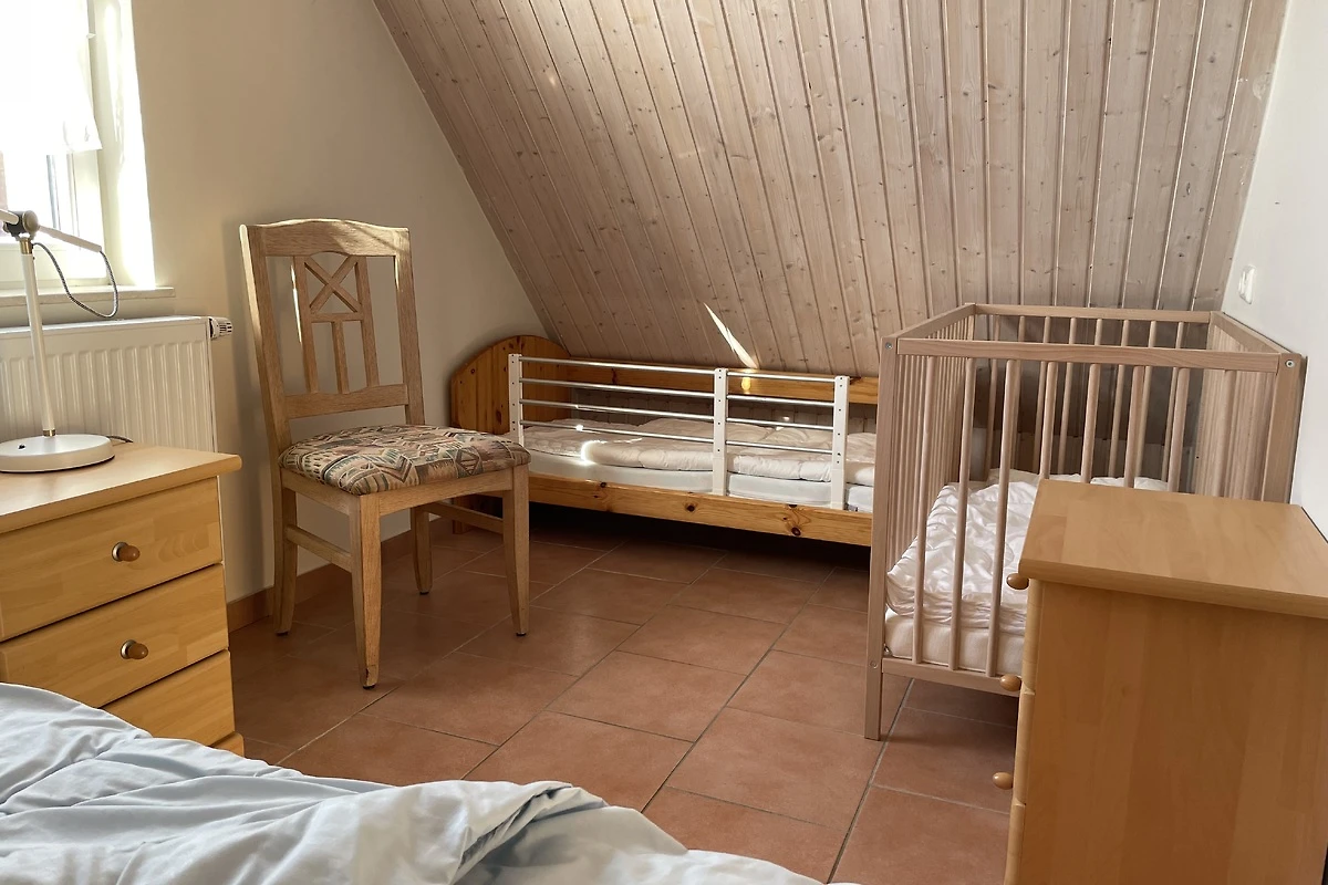 Dans la maison Welle, il y a 4 chambres à coucher, 8 lits et en plus 2 lits pour enfants. 1 chambre à coucher se trouve au rez-de-chaussée et les 3 autres au premier étage. Les deux salles de bain sont au rez-de-chaussée