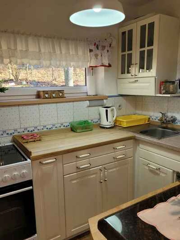 La cabane de montagne se trouve sur un terrain de jardin, ouvert, 400 m². Le propriétaire ne vit pas dans la maison ou sur la propriété. Détentez-vous en dehors sur la terrasse ou la pelouse avec meubles de jardin. L´ aire de jeux avec balançoire et bac à sable enchante les enfants. Un barbecue est disponible. Des soirées romantiques promet le feu de camp.