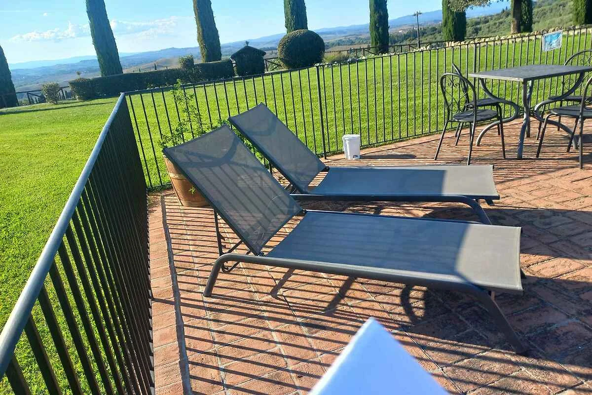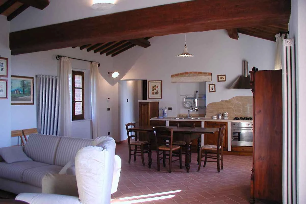 Localisation: Asciano. L' appartement de vacances se trouve dans une maison d´appartements construite en 1900, a été rénovée dans l´année 2000 et a l´installation moderne, fonctionnelle et de style typique du pays. Le terrain se trouve dans une ferme. Aussi pour la vue sur la vallée et l' emplacement tranquille et ensoleillé à la lisière de la forêt est populaire la domicile. La casa è situata su una collina nel bellissimo scenario delle Crete Senesi. Si tratta di un punto di partenza idéal pour un gîte passeggiate à bicicletta. L´accès 2000 m de longueur à la propriété se fait par une route secondaire ou rue (chemin campagnard ou forestier) non goudronnée. À la maison sont disponibles pour vous 4 places de stationnement sur le terrain. À la distance de 3 km est la possibilité d'achats la plus proche, restaurant 3 km et centre-ville 4 km. gare, médecin, pharmacie, banque respectivement 5 km à Asciano. aéroport à Firenze 80 km. discothèque à moteriggioni 50 km. thermes à rapolano terme 12 km. cinéma à sinalunga 15 km. Une aire de jeux pour enfants est 5 km de distance. route principale 2 km. Banque 3 km. Sienne 25 km, Montalcino 30 km, Pienza à 20 km. Aéroports: Florence 90 km, Pise 150 km Rome 180 km.