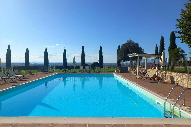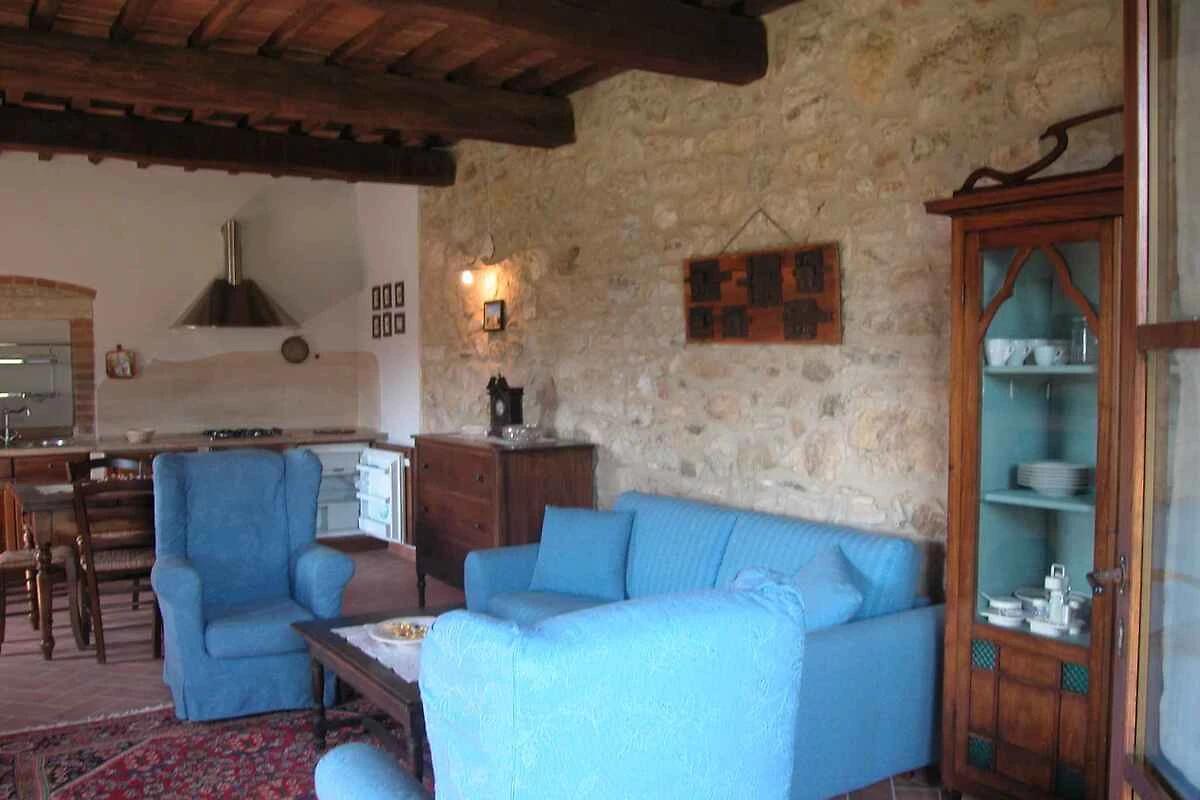 Localisation: Asciano. L' appartement de vacances se trouve a l´installation de style typique du pays. Le terrain se trouve dans une ferme. Aussi pour l' emplacement tranquille et ensoleillé est populaire la domicile. La maison est située sur une colline dans le beau paysage de la Crete Senesi. Il est un point de départ idéal pour des promenades et balades à vélo. À la maison sont disponibles des places de stationnement sur le terrain. À la distance de 3 km est la possibilité d'achats la plus proche, restaurant 3 km et centre-ville 3 km. thermes à Rapolano 12 km. Banque 3 km. Sienne 25 km, Montalcino 30 km, Pienza 20 km, Florence à 90 km. Aéroports: Florence 90 km, Pise 150 km Rome 180 km.