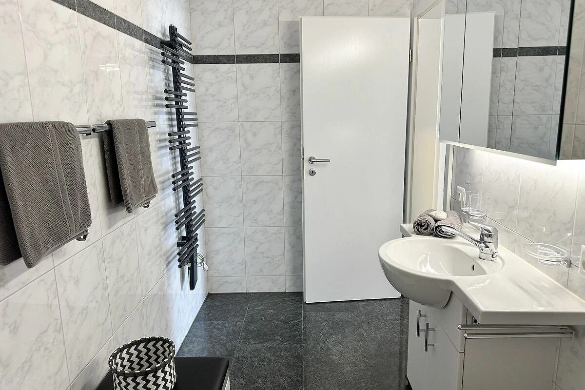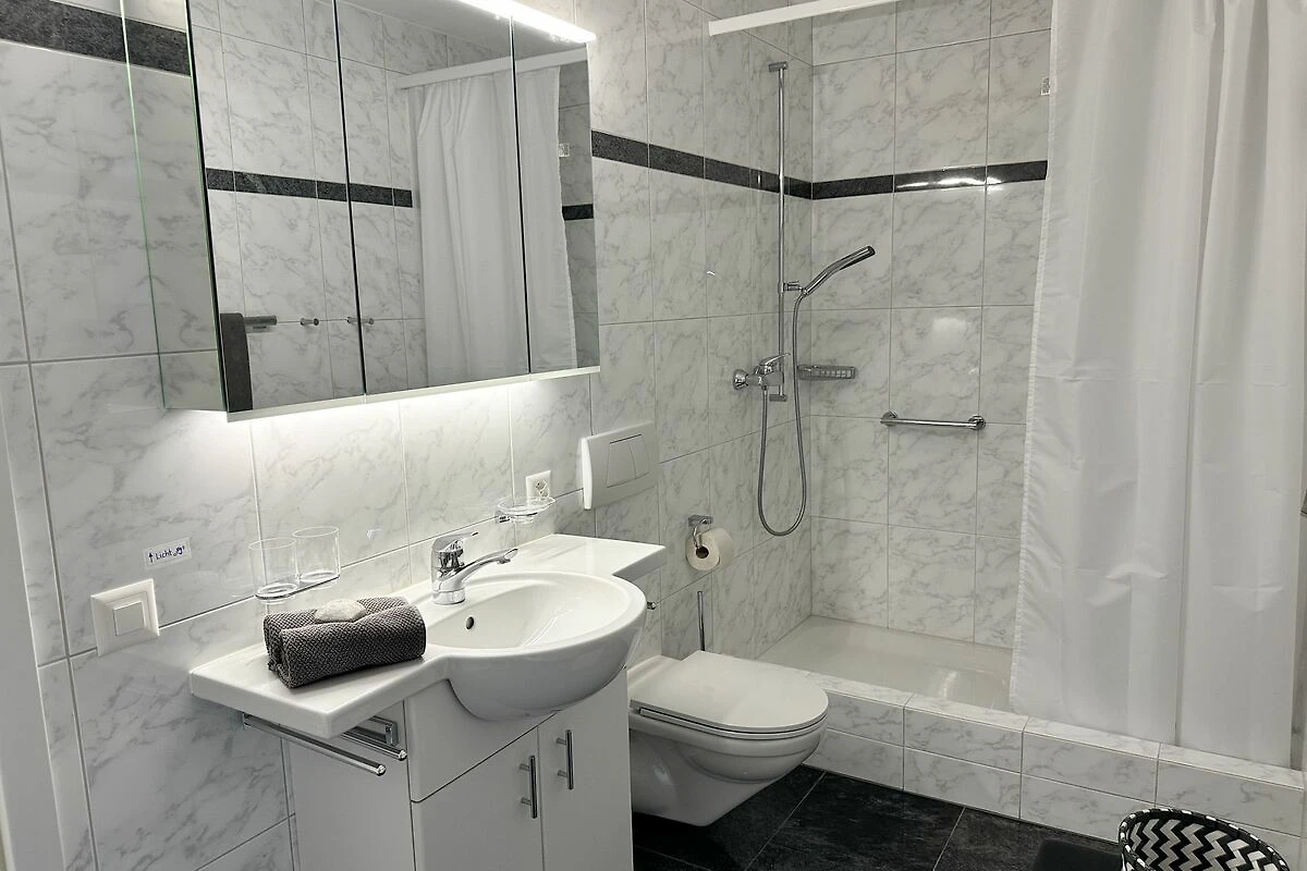 - salle de bain avec douche/WC, lavabo, sèche-cheveux