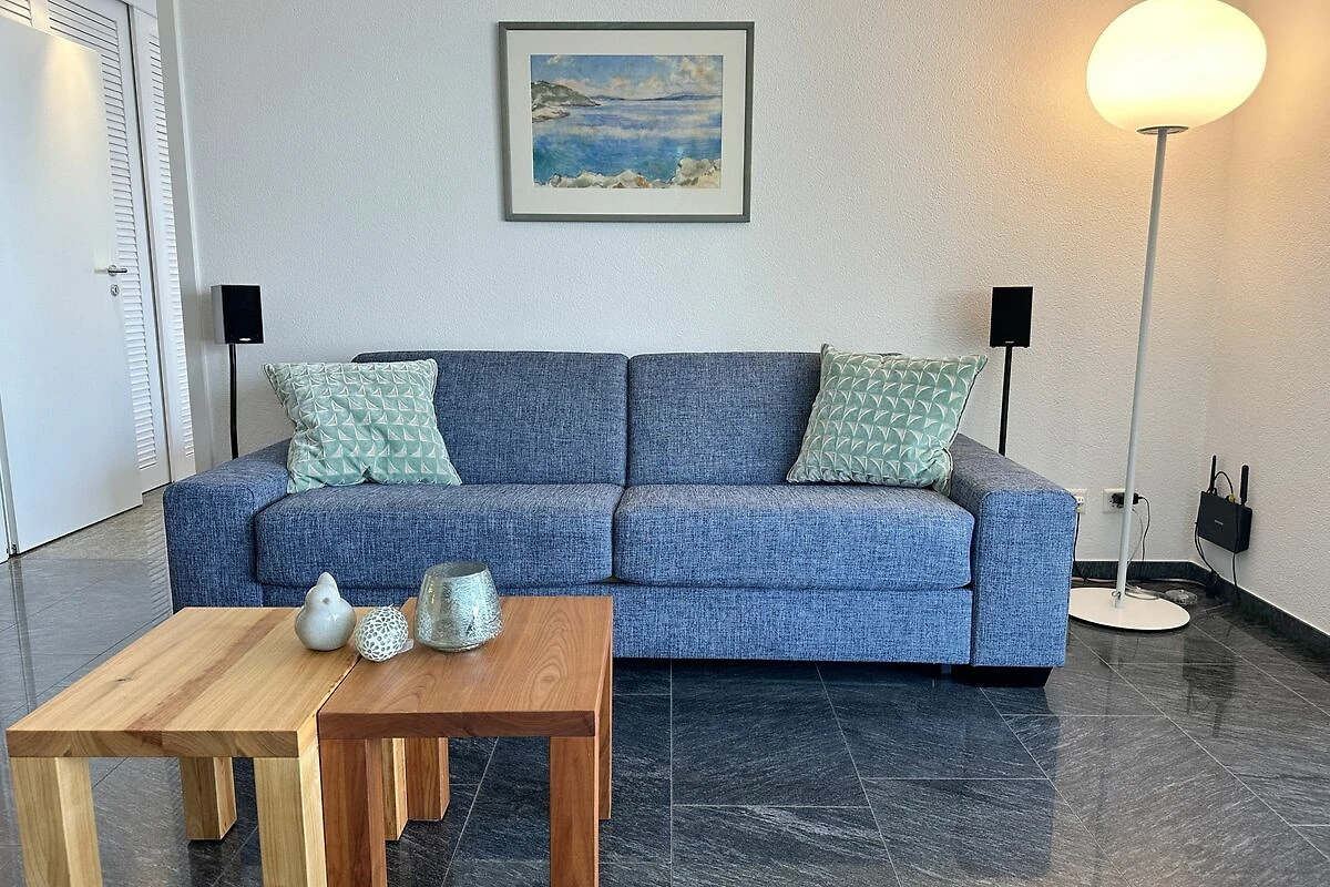 L'appartement de vacances de 2,5 pièces peut accueillir 2 adultes et 2 enfants (âge maximum 10 ans) Il se compose d'un salon-salle à manger confortable et lumineux avec cuisine ouverte et table à manger, ainsi que d'un canapé-lit, d'un fauteuil et d'une table basse. En plus de la TV/WLAN, les clients ont à leur disposition un large éventail de matériel de lecture et de jeux de société. Toutes les chambres ont de grandes fenêtres panoramiques et une vue directe sur le lac. Une chambre à coucher avec un lit double et une grande armoire encastrée ainsi qu'un accès direct à la terrasse.une salle de bain spacieuse avec douche, toilettes et lavabo.la merveilleuse terrasse panoramique plantée de plantes méditerranéennes est en partie couverte et équipée de chaises longues, d'une table à manger et d'un salon confortable pour se détendre. Le grill moderne du four en pierre peut être utilisé, le bois est à la disposition des hôtes. Le parking se trouve directement devant la maison.