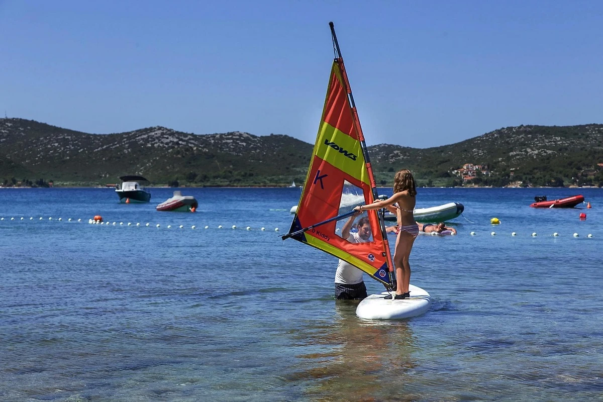 Activités à proximité : Au sein du camping se trouve un restaurant "Parc Soline". A l'ombre de la pinède, vous pourrez choisir parmi diverses spécialités méditerranéennes sur la grande terrasse avec vue sur la mer. Pour le divertissement des adultes et des enfants, des activités ludiques et sportives sont organisées chaque jour par les animateurs professionnels. Ils seront également heureux de vous aider à planifier des randonnées ou des excursions dans des parcs nationaux attrayants tels que Krka, Kornati ou Paklenica, ou dans les villes historiques de Zadar et Sibenik. Vous pouvez rejoindre le centre-ville de Biograd avec une promenade détendue le long de la plage le long du chemin de front de mer magnifiquement aménagé.