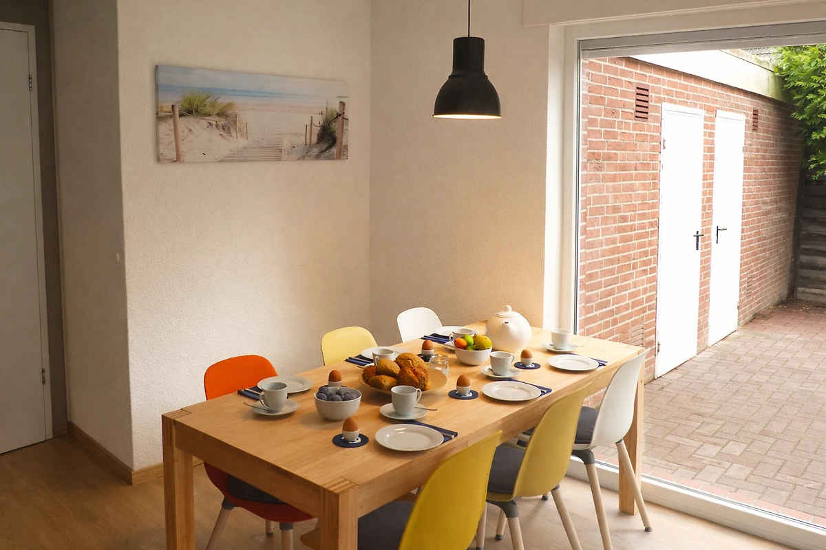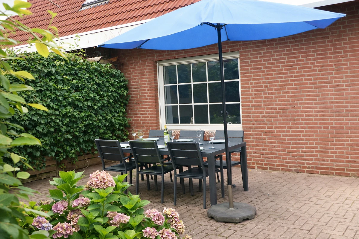 La maison mitoyenne récemment rénovée et réaménagée fait partie d'un ensemble de maisons mitoyennes bien entretenu. Au rez-de-chaussée, la maison dispose d'une grande salle de séjour lumineuse avec un canapé et une télévision par satellite de 50 pouces, d'un coin repas avec une table à manger en bois massif et d'une cuisine séparée très bien équipée (avec micro-ondes et lave-vaisselle). Au rez-de-chaussée se trouve également un nouveau WC pour invités avec lave-mains. Depuis le salon, vous avez accès à la terrasse ensoleillée et au grand jardin. Au premier étage, vous trouverez deux chambres à coucher (l'une avec un lit double boxspring et l'autre avec deux lits simples) ainsi qu'une salle de bain claire et moderne avec une douche surdimensionnée. Au rez-de-chaussée se trouve un studio avec deux lits simples supplémentaires.