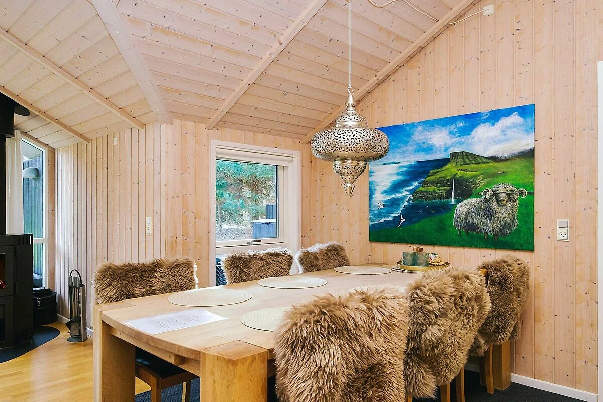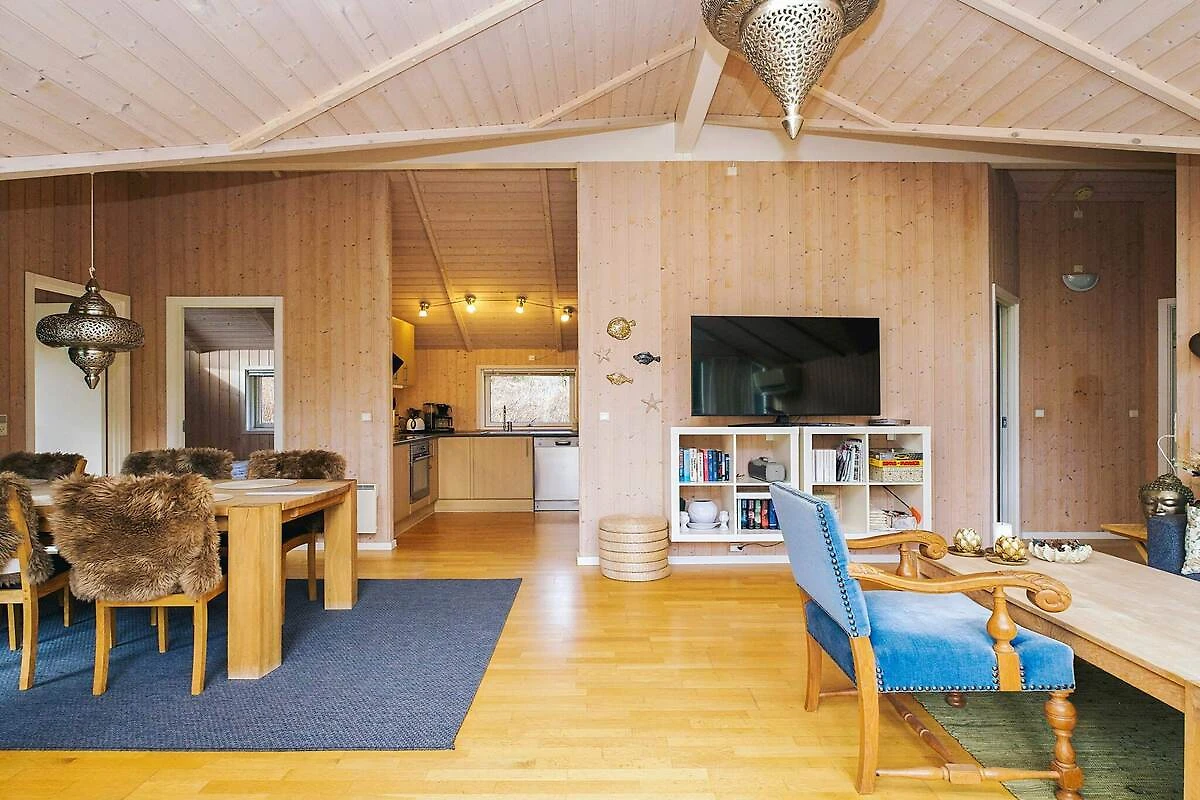 Maison de vacances située sur un grand terrain et à distance de marche de la mer à Ellinge Lyng. Le gîte dispose de trois chambres avec placard dans chaque pièce. Une chambre a sa propre télévision. Il y a deux toilettes et une grande salle de bain avec bain à remous et sauna. Cuisine ouverte et bien équipée en liaison avec la salle à manger et le salon avec poêle à bois. Grand téléviseur dans le salon avec chaînes DR et possibilité de diffuser vos propres services. Buanderie séparée avec lave-linge, sèche-linge et espace pour les vêtements de dessus. Il y a une grande terrasse partiellement couverte donnant sur le grand terrain avec de nombreuses possibilités de jouer au ballon et de jouer. Pas à louer à des groupes de jeunes.