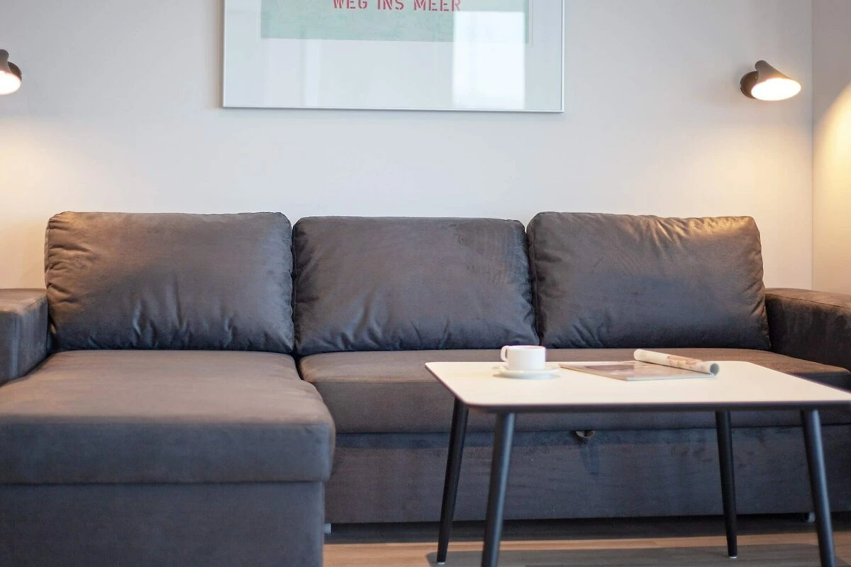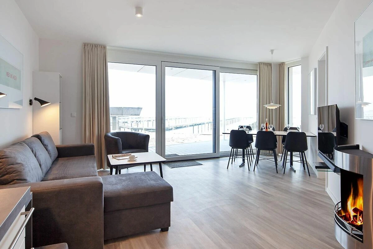 Das Apartment ist hell, stilvoll und komfortabel eingerichtet. Der offene Küchen-Wohnbereich lädt zum gemeinsamen Kochen, Essen und Entspannen ein, während ein Bioethanol-Kamin an kühleren Abenden für gemütliche Stimmung sorgt. Für Unterhaltung sorgen ein Fernseher mit Blu-ray-Player und eine Bluetooth-Soundbar. Das Badezimmer mit Regendusche, Dampfbadfunktion und Fußbodenheizung vermittelt ein Spa-Feeling. Zwei einladende Schlafzimmer, jeweils mit Flachbildfernseher, sorgen für erholsame Nächte nach Tagen am Wasser.