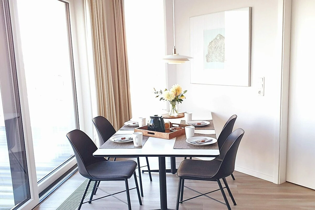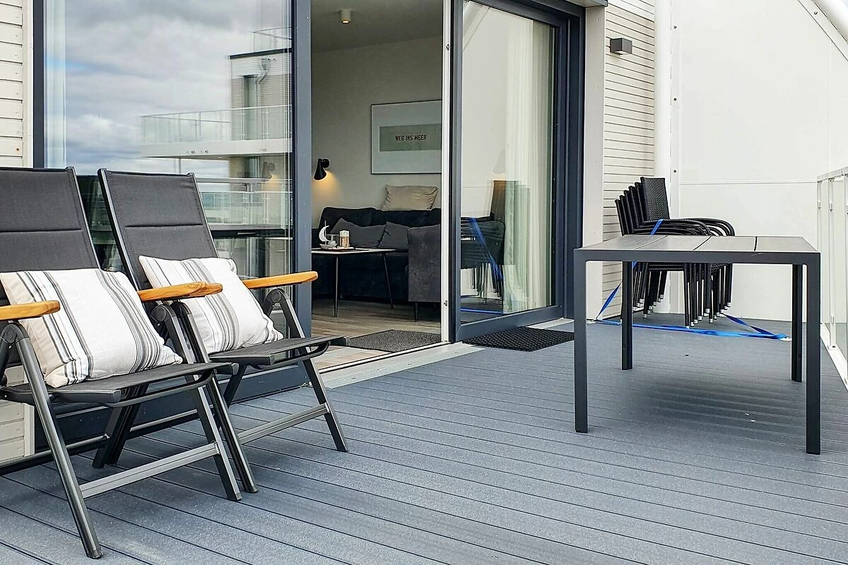 Dieses moderne und stilvolle Apartment im 3. Stock bietet einen atemberaubenden Blick über den Yachthafen und die glitzernde Ostsee. Von Sonnenaufgang bis Sonnenuntergang fühlt sich das Panorama wie geschaffen für Sie an: Boote schaukeln sanft im Hafen und der Horizont leuchtet in ständig wechselnden Farben. Der große Balkon lädt dazu ein, nach draußen zu gehen, einen Kaffee zu trinken oder einfach die frische Seeluft zu genießen und den Tag ausklingen zu lassen.