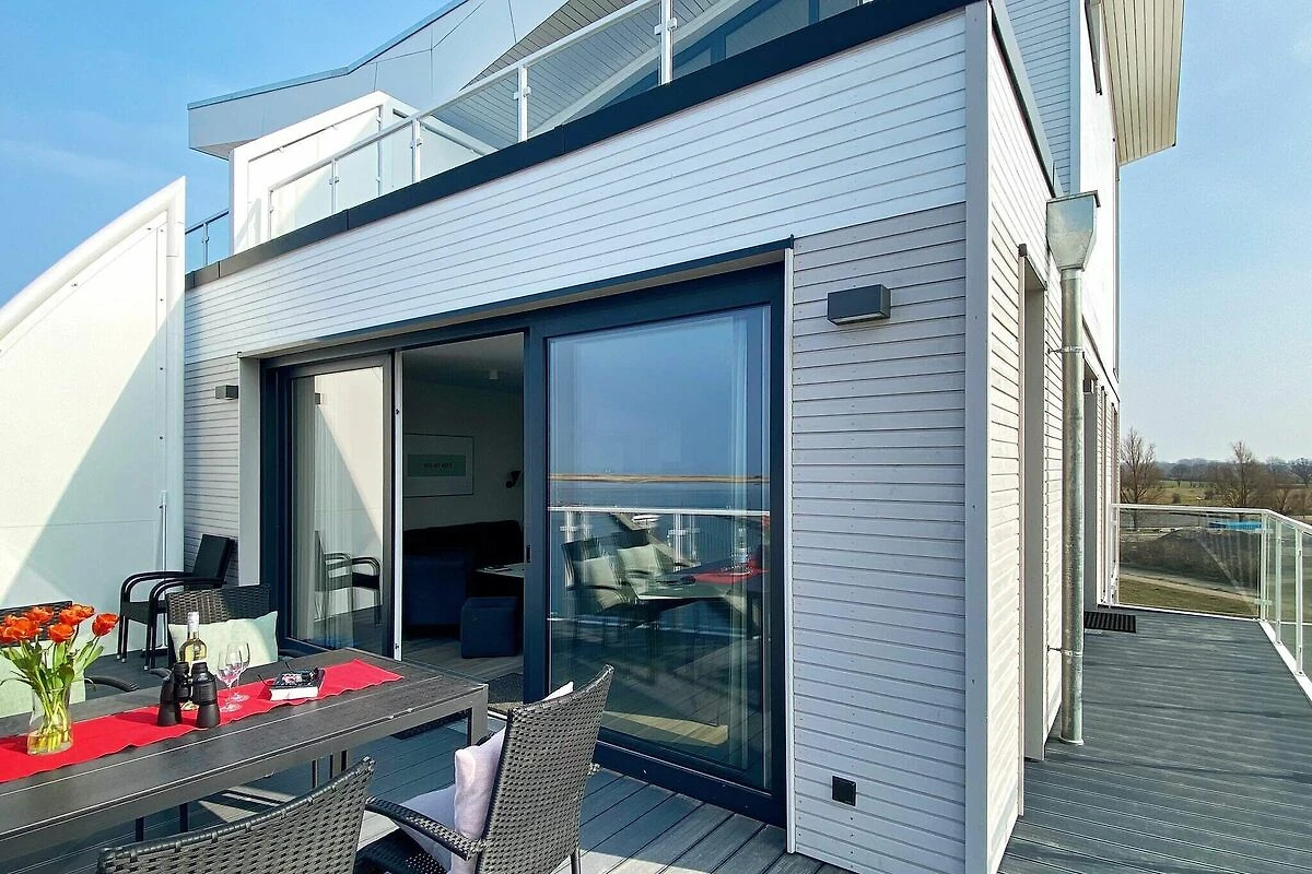 Stellen Sie sich vor, Sie beginnen Ihren Morgen mit frischem Kaffee im Freien und lassen den Abend mit einem Glas Wein unter freiem Himmel ausklingen. Dieses einladende Apartment im 2. Stock bietet nicht nur einen Blick auf den Hafen und die Ostsee, sondern auch eine schöne, geräumige Terrasse mit Tisch und Stühlen – der perfekte Ort, um gemeinsam zu essen, auf den Tag anzustoßen und die sich ständig verändernde Landschaft zu genießen.