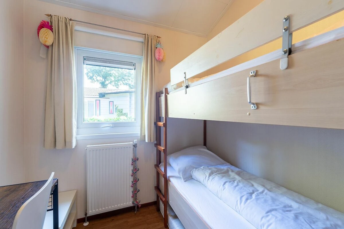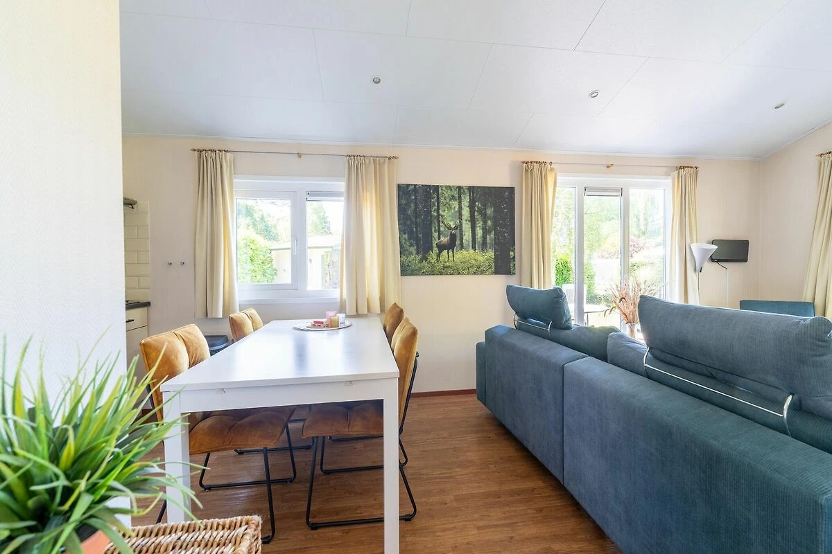 Cette charmante maison de vacances offre un séjour chaleureux et confortable dans un parc paisible. Le salon est accueillant et parfait pour se détendre, tandis que la cuisine permet de prendre facilement ses repas en famille. Sortez sur la terrasse privée et dans le jardin où les enfants peuvent profiter du trampoline et des équipements de jeux communs, ou passez vos après-midis ensoleillés dans les piscines intérieure et extérieure communes. Que vous vous détendiez avec un livre, profitiez d'un barbecue sous les étoiles ou jouiez à des jeux en famille, cette maison est le lieu idéal pour passer des moments inoubliables. Nature, culture et aventure à proximité