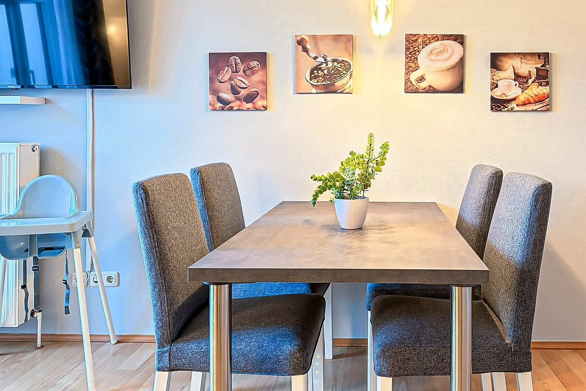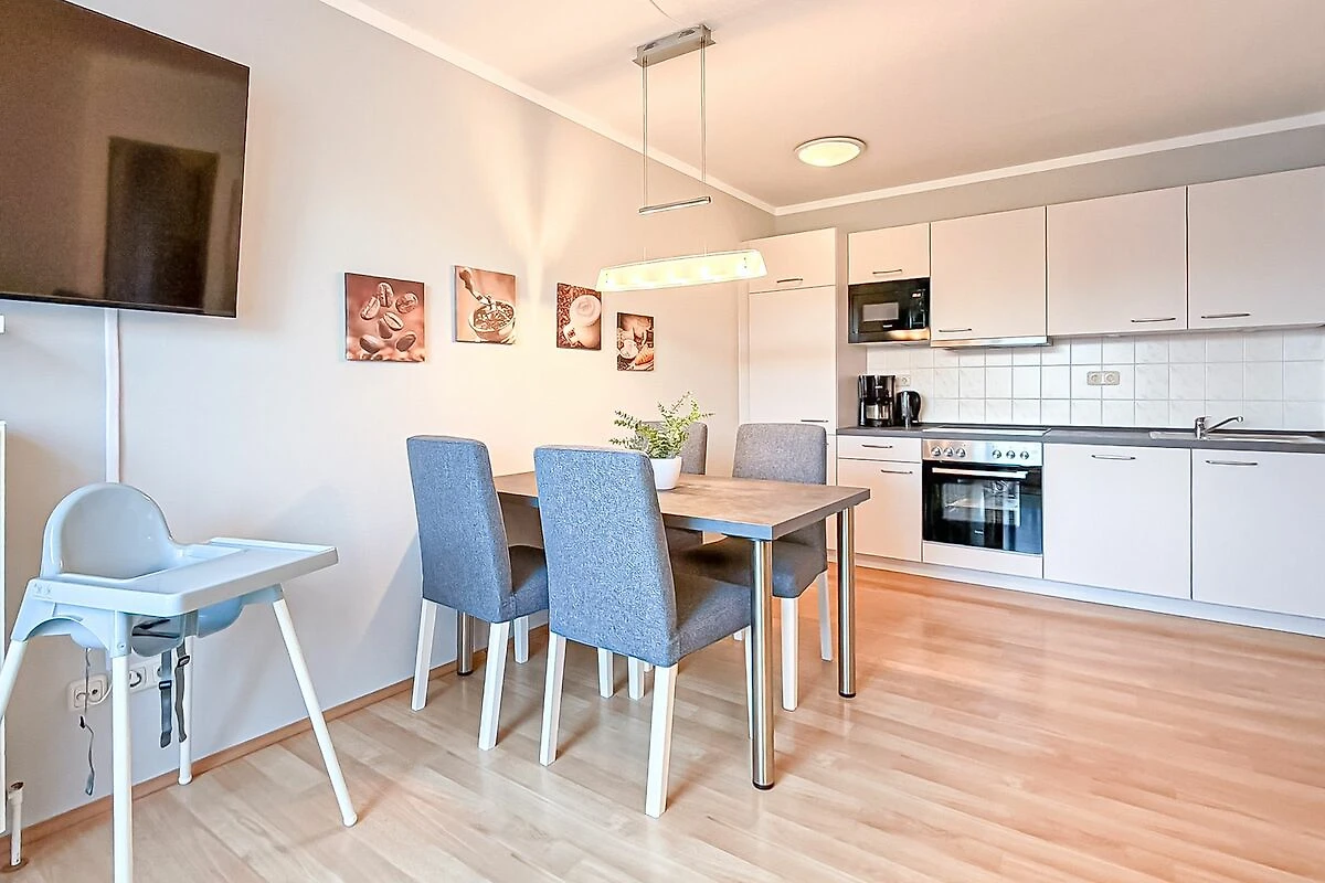 Un joli petit appartement de vacances pour deux personnes. Le balcon est malheureusement très petit et, en raison des intempéries, pas agréable.
