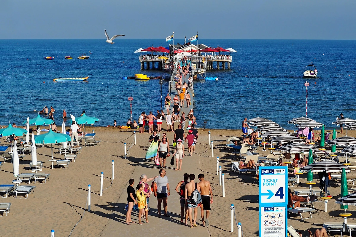 En été: Mer Adriatique à Lignano Sabbiadoro 850 m, plage de sable à Lignano Sabbiadoro, 850 m de votre location.