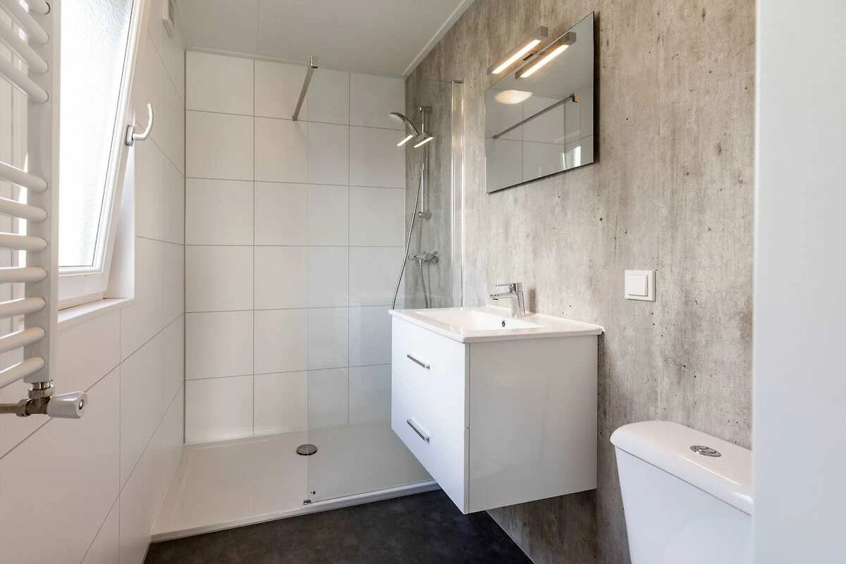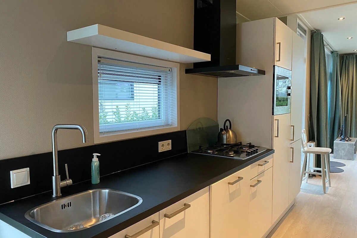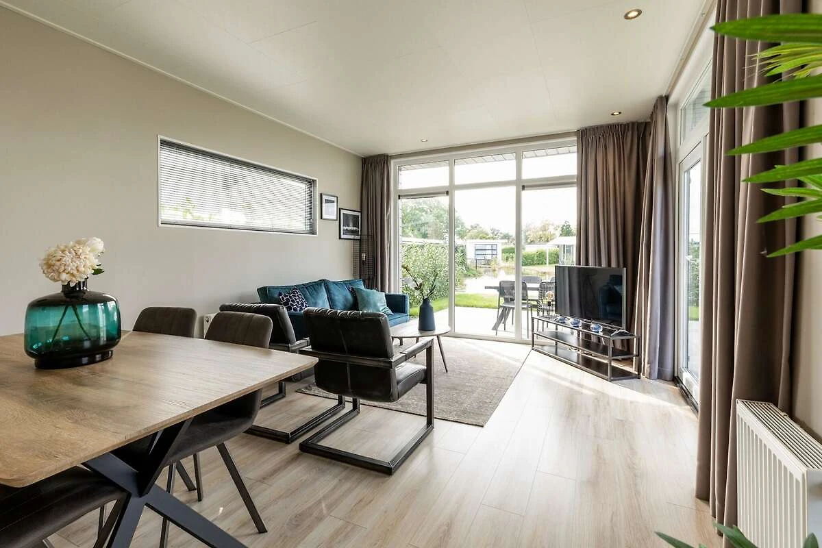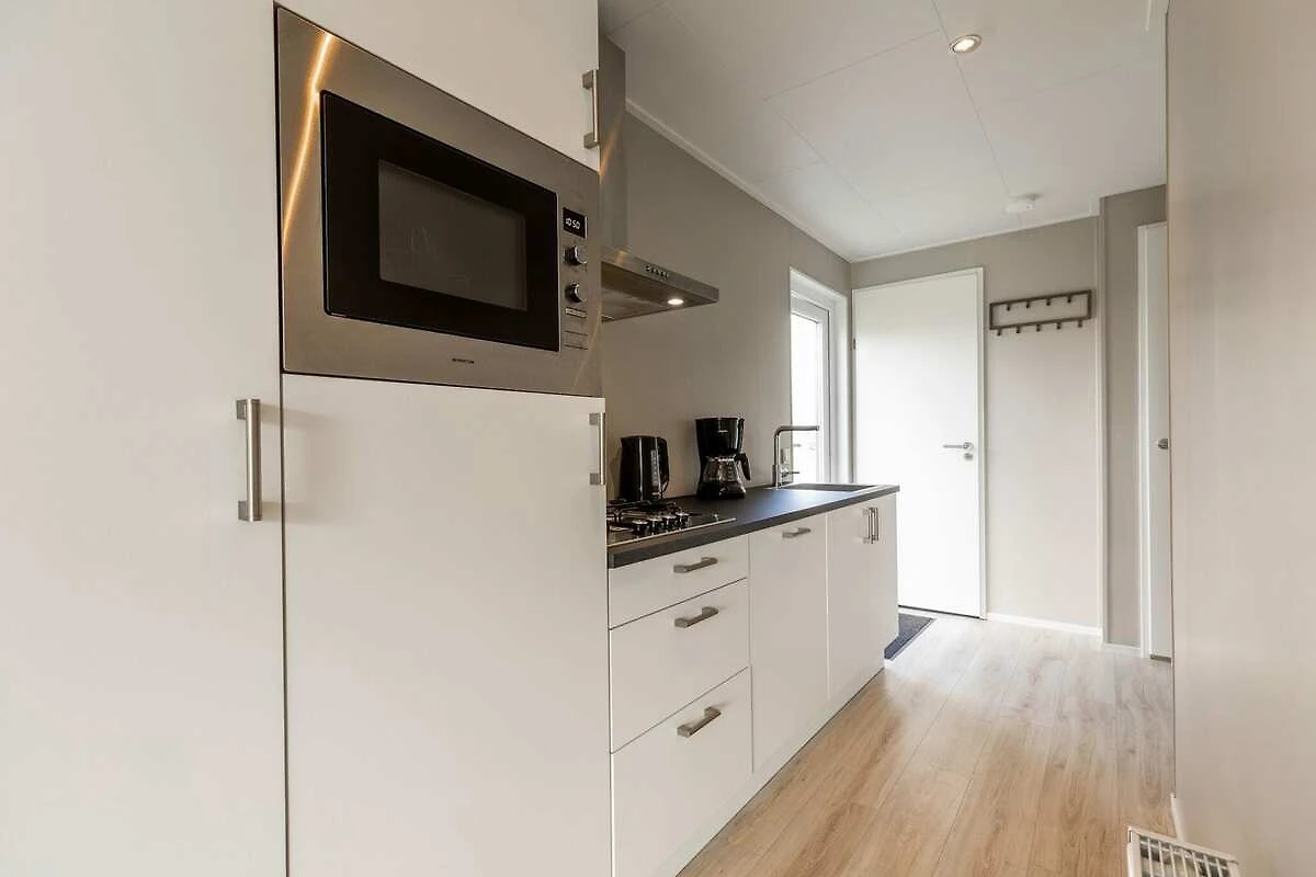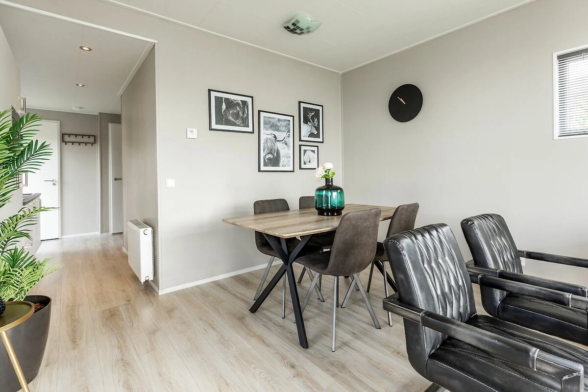 Ce chalet élégant est entièrement meublé et équipé. Les grandes fenêtres du living avec sa cuisine ouverte créent une sensation d'espace. Vous disposez de deux belles chambres à coucher avec suffisamment d'espace de rangement et de confortables lits à sommier tapissier simples ou doubles. Il est également très agréable de vivre à l'extérieur. Depuis le beau jardin, avec terrasse et mobilier de jardin, vous avez une vue sur l'étang paysager.