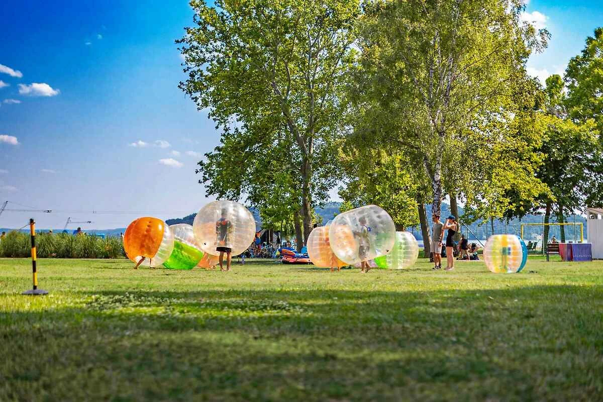 Le camping est équipé d'un supermarché (ouvert du 1er mai 2026 au 15 septembre 2026), d'un bazar et d'un magasin de plage pour s'assurer que les clients ont tout ce dont ils ont besoin pour passer un séjour sans soucis. De plus, les services suivants sont à la disposition des clients : Coffres-forts, blanchisserie, point Internet, WLAN, coiffeur, massage, service de tatouage et sauna. Certains services peuvent être soumis à des frais supplémentaires. En été, du 20 juin au 30 août 2026, les plus jeunes pourront profiter d'un programme d'animation spécial. Le camping propose également une aire de jeux, un terrain multifonctionnel pour le football et le volley-ball ainsi qu'un terrain de beach-volley. Pour les amateurs de sport, un court de tennis, un mini-golf, du karting, du ping-pong et la location de vélos et de vélos électriques sont disponibles contre paiement. Les amateurs de sports nautiques peuvent louer des canoës, des bateaux, des planches de surf, des cours de ski nautique et d'autres équipements de sports nautiques. Des bouées peuvent également être louées.