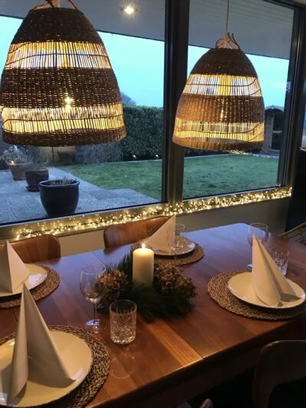 La maison est très belle. Surtout le bien-être et l'espace extérieur sont super. Comme nous avons eu 2 semaines de soleil, nous avons peu utilisé le salon. Le soir, il nous semblerait qu'un éclairage supplémentaire au plafond près du canapé serait agréable car il fait un peu sombre pour lire. L'espace assis couvert et protégé du vent sur la terrasse avec cheminée extérieure est très beau, ce qui permet de rester dehors jusqu'à tard le soir. Le terrain a du soleil toute la journée et les couchers de soleil que l'on peut voir depuis le jardin resteront longtemps gravés dans nos mémoires. Nous avons eu un petit problème avec l'éclairage extérieur qui a été résolu en 2 heures. Un service vraiment génial. Nous étions entièrement satisfaits.
