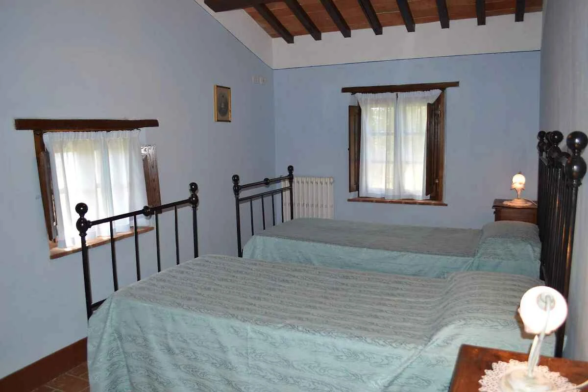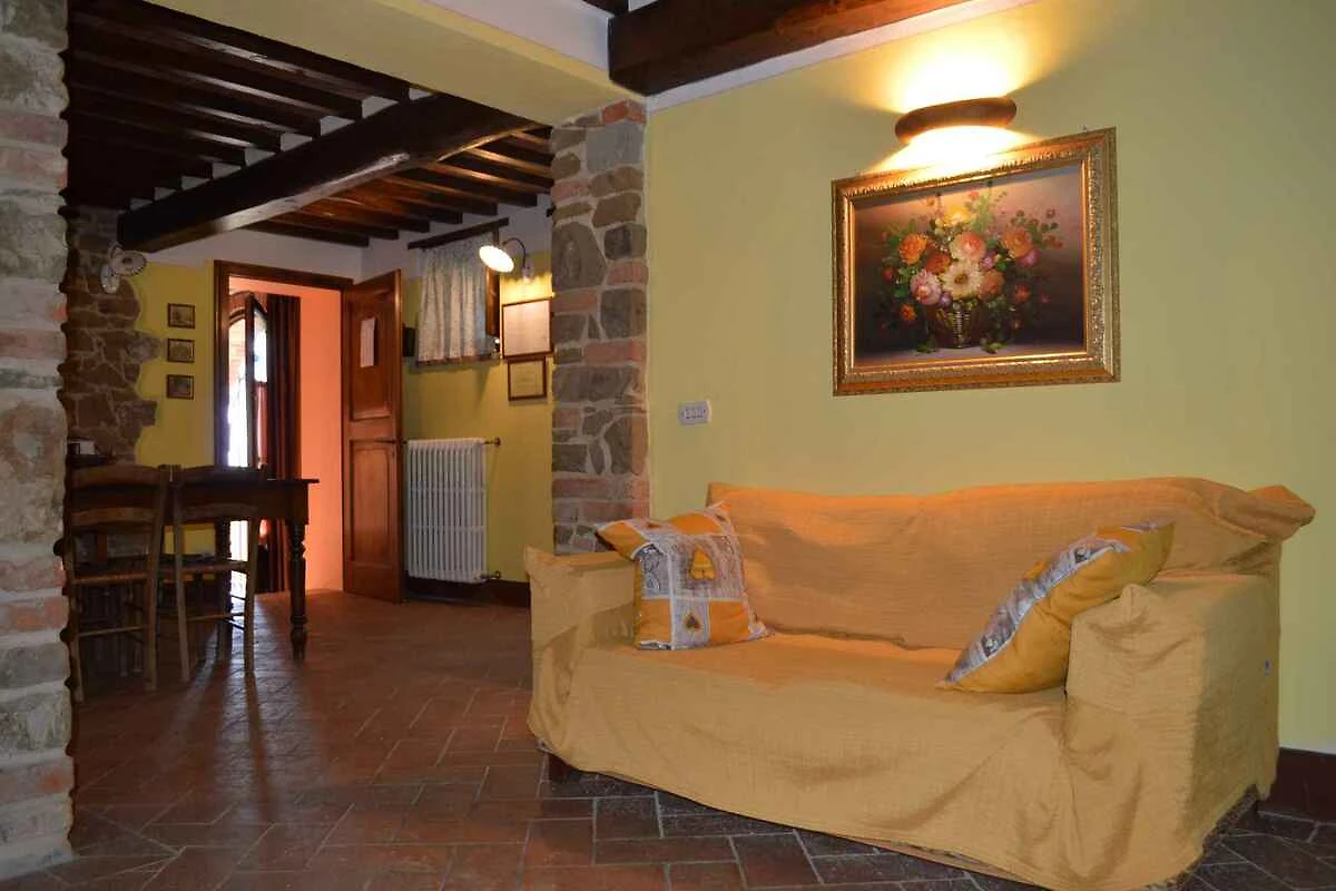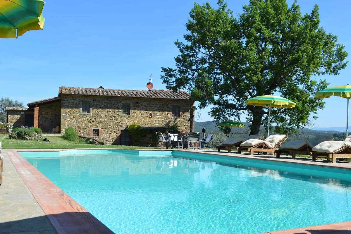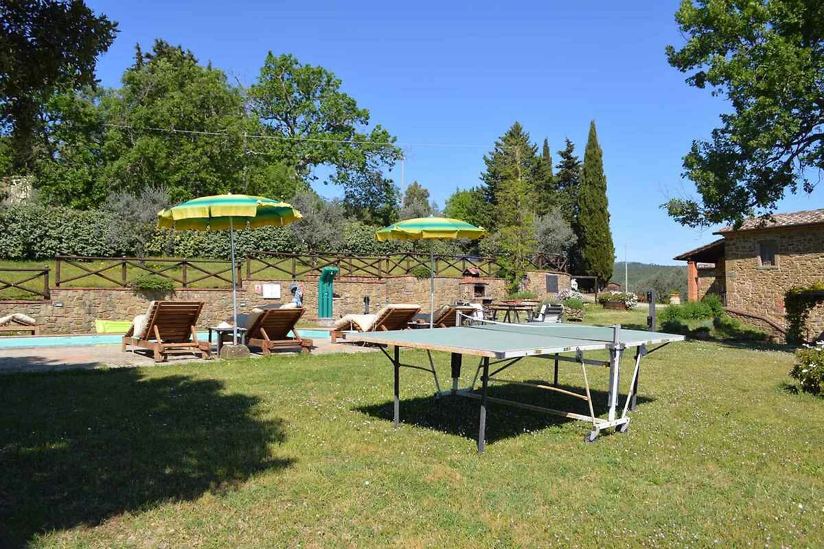 Localisation: Ciggiano, 450 d'altitude. La villa isolée, construite en 1800 et rénovée en 2000 est moderne, rustique et fonctionnelle. Le terrain se trouve dans une ferme. Aussi pour la vue sur les forêts et l' emplacement tranquille et ensoleillé est populaire la domicile. L´accès 100 m de longueur à la propriété se fait par une route secondaire non goudronnée. À la villa sont disponibles pour vous 3 places de stationnement sur le terrain. À la distance de 2 km est la possibilité d'achats la plus proche, restaurant 6 km et centre-ville 2 km. discothèque à Arezzo 30 km. médecin, pharmacie, banque respectivement 2 km à Ciggiano. aéroport à Firenze 80 km. route principale 6 km. Sienne 60000m Arezzo 18000m Cortona 35000m