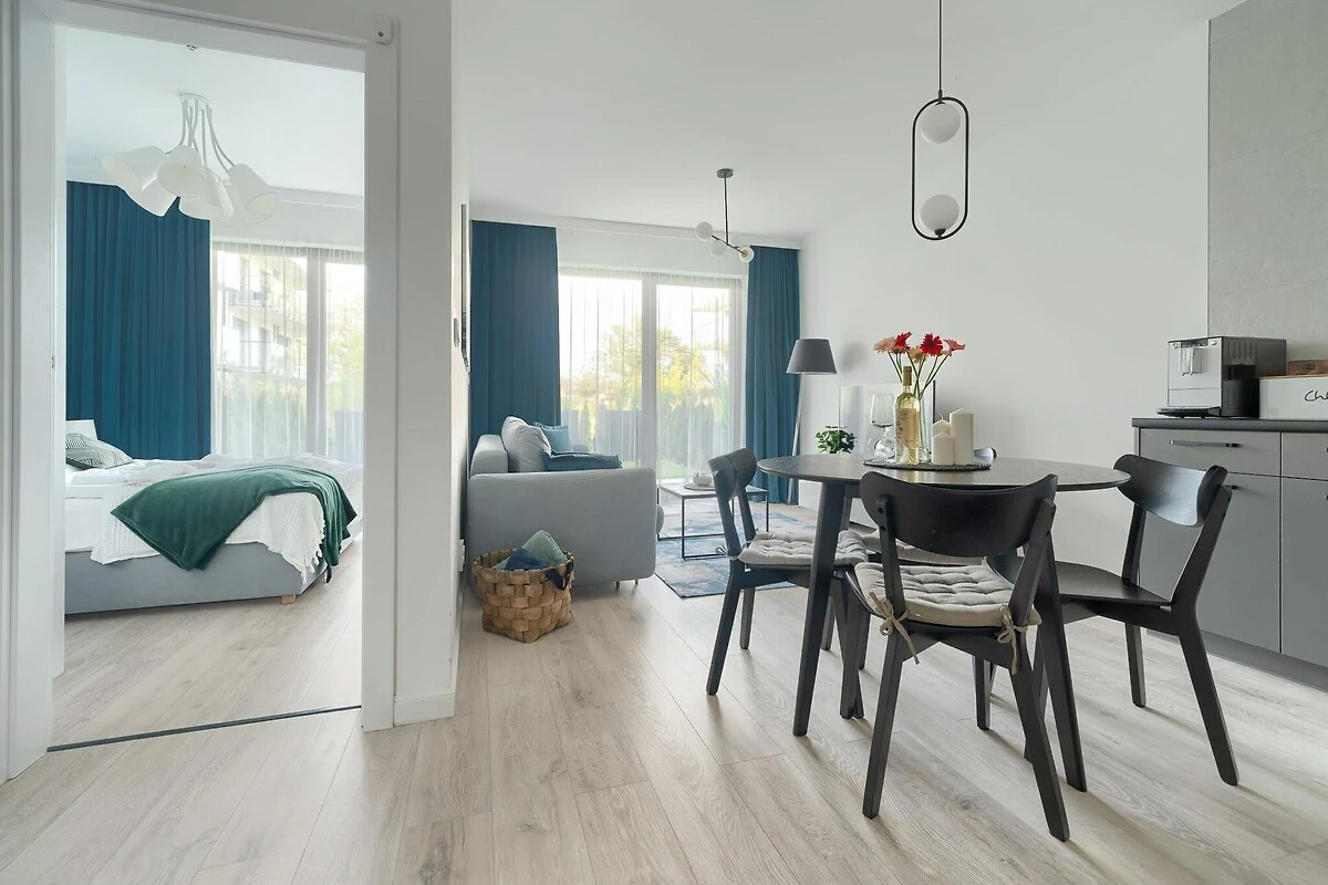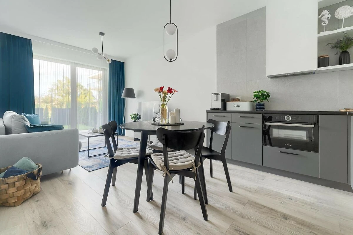 Complexe d'appartements dans une jolie station balnéaire - Niechorze. Emplacement parfait, juste à côté de la plage, au centre de la ville. De nombreux restaurants, bars et commerces à proximité. À 400 m du lac Liwia Łuża, où se trouvent des jetées de repos (réserve naturelle).