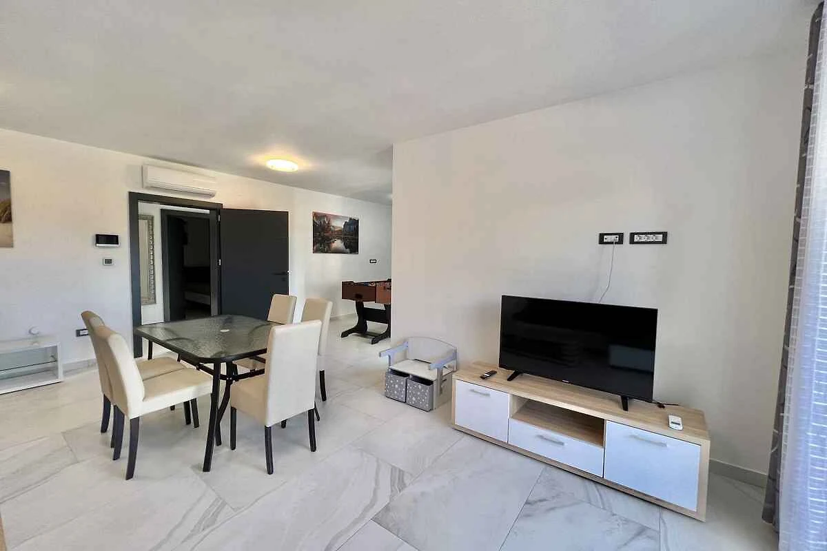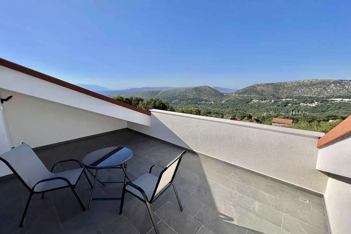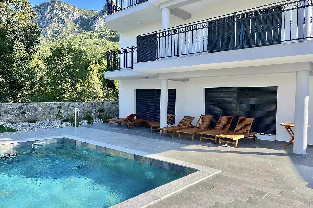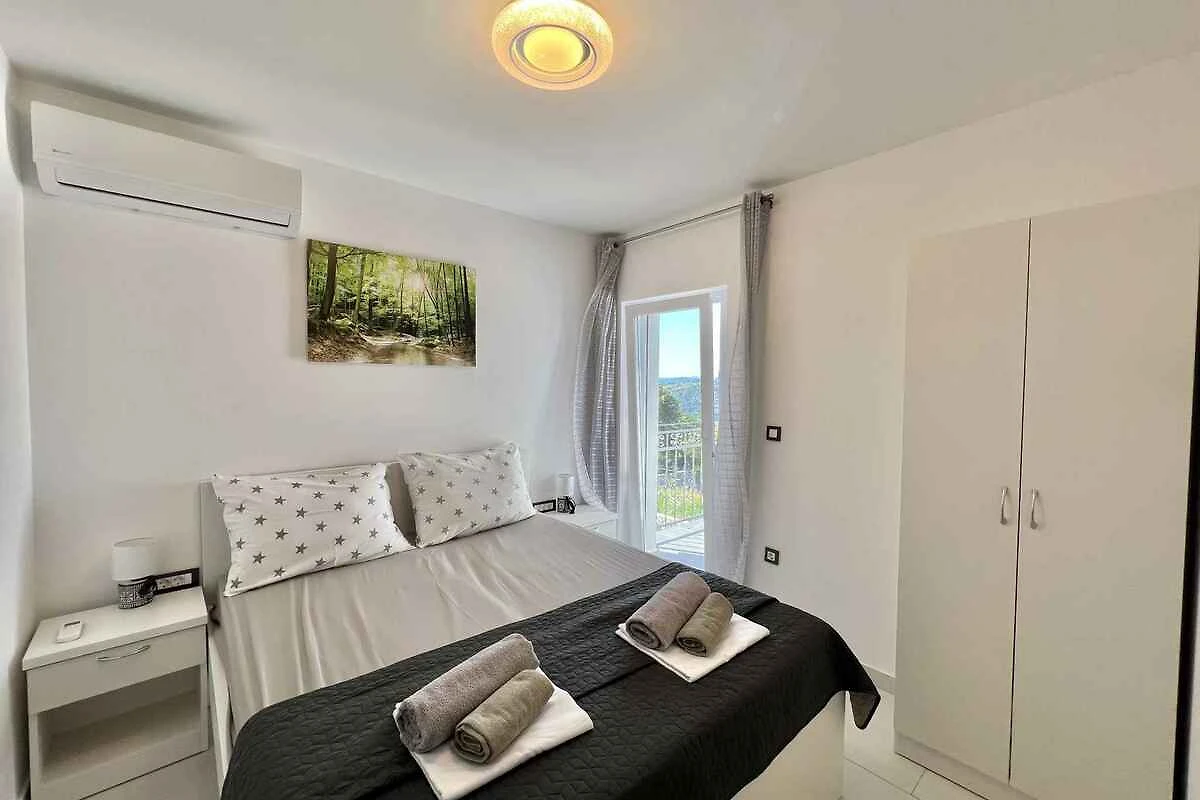 Localisation: Bribir. La villa isolée et rénovée en 2023 est moderne et luxueuse. Le terrain se trouve dans une résidence à la périphérie. Aussi pour la vue sur la vallée et l' emplacement tranquille et ensoleillé est populaire la domicile. L´accès à la propriété se fait par une route principale asphaltée. À la villa sont disponibles pour vous 4 places de stationnement sur le terrain. À la distance de 500 m est la possibilité d'achats la plus proche, restaurant 500 m et centre-ville 500 m. discothèque, médecin, pharmacie, banque respectivement 5 km à Crickvenica. fleuve: gare 30 km et cinéma, aéroport respectivement 35 km.
