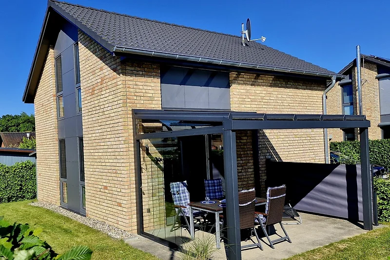 La maison construite en 2019 se trouve à Karlsminde, près d'Eckernförde. Elle dispose de 2 chambres à coucher et est parfaitement adaptée aux couples et aux familles. La plage se trouve à environ 600 m et les commerces, y compris la boulangerie, à environ 500 m (d'avril à octobre). Au rez-de-chaussée se trouvent le séjour lumineux avec coin cuisine ouvert, 1 chambre à coucher avec lit double, 1 salle de douche avec douche de pluie, ainsi qu'un petit débarras. Des fenêtres jusqu'au sol et un grand élément de fenêtre donnant sur la terrasse donnent beaucoup de lumière à la pièce à vivre, des rideaux offrent sur demande une protection contre les regards et le soleil. Un canapé confortable et deux fauteuils confortables, une télévision et une chaîne hi-fi complètent l'ambiance. La kitchenette et la salle à manger attenante sont confortablement équipées et invitent à cuisiner ensemble et à passer de bons moments ensemble. À l'étage supérieur se trouvent une salle de bain avec machine à laver, une pièce à usage libre avec bureau ainsi qu'une chambre à coucher spacieuse avec un lit double, un fauteuil lounge et une télévision. Toutes les chambres à coucher disposent de grandes armoires et sont équipées de stores et de rideaux. Un lit de voyage pour enfant et une chaise haute sont mis gratuitement à la disposition de nos petits hôtes. À l'extérieur, une terrasse ensoleillée orientée sud-ouest invite à la détente, la verrière avec auvent permet de rester à l'extérieur même quand il fait moins beau. Les meubles de jardin, y compris les chaises longues et le barbecue, font bien entendu partie de l'équipement. Une remise fermant à clé pour les vélos ainsi que des places de stationnement pour deux voitures sont à la disposition des hôtes.