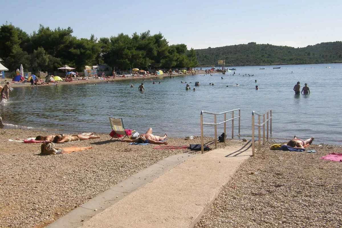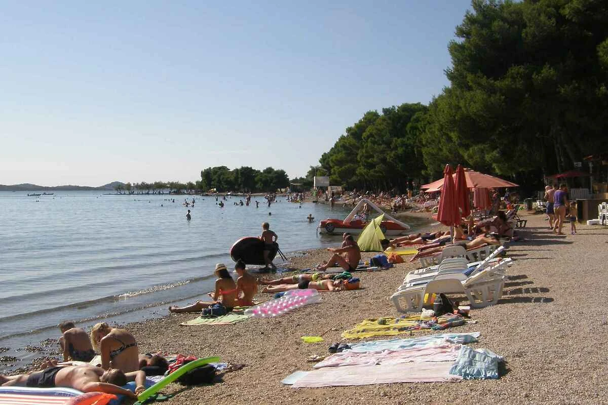 En été: Mer Adriatique à Pirovac 170 m, plage de sable avec des galets et des cailloux à Pirovac, 300 m de votre location.