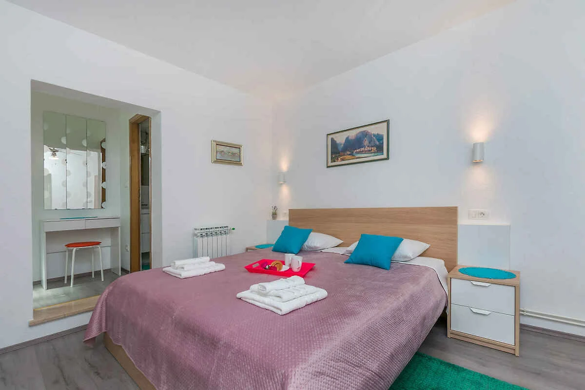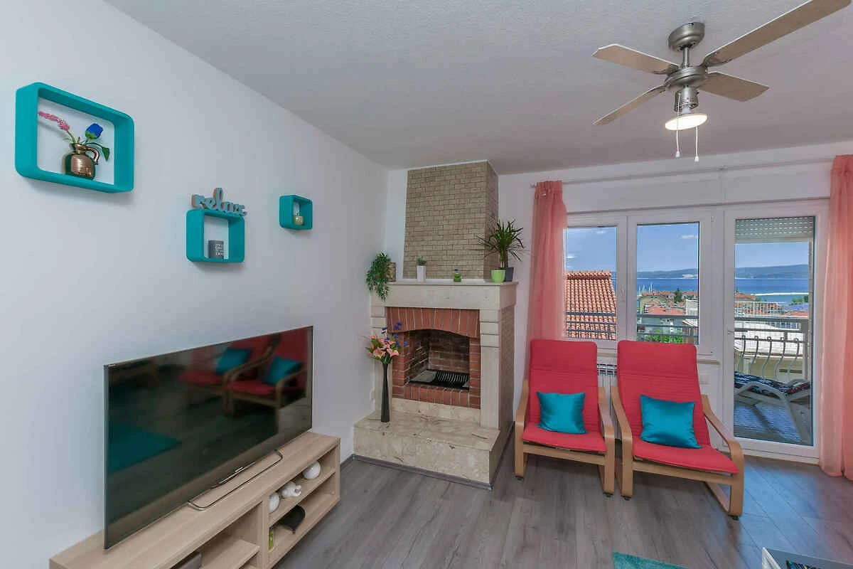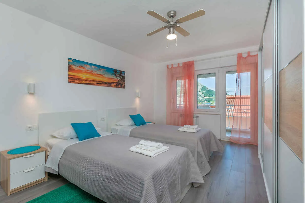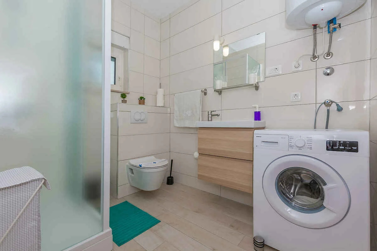 Localisation: Omis. L' appartement de vacances se trouve dans une maison d´appartements et a l´installation moderne. Le terrain se trouve à la périphérie. Aussi pour la vue sur le panorama et l' emplacement tranquille et ensoleillé est populaire la domicile. À la maison sont disponibles des places de stationnement dans un garage. À la distance de 250 m est la possibilité d'achats la plus proche, restaurant 400 m et centre-ville 600 m. aéroport à Diviser 45 km. Mamies: médecin 1300 m, banque 250 m et pharmacie 550 m.