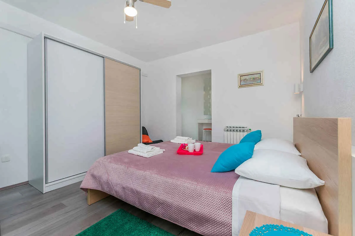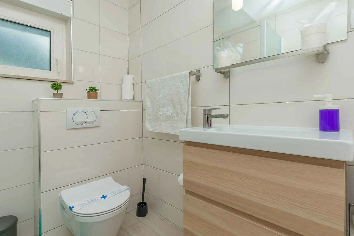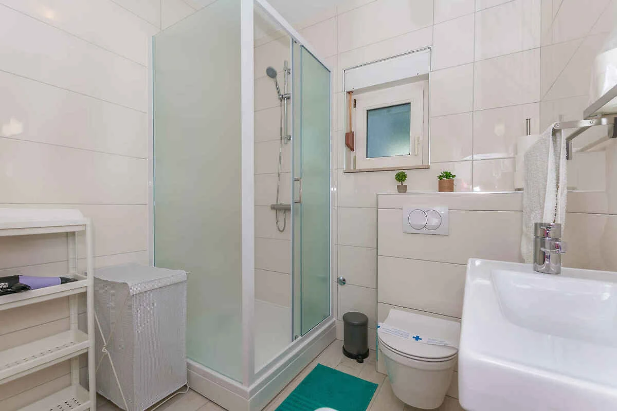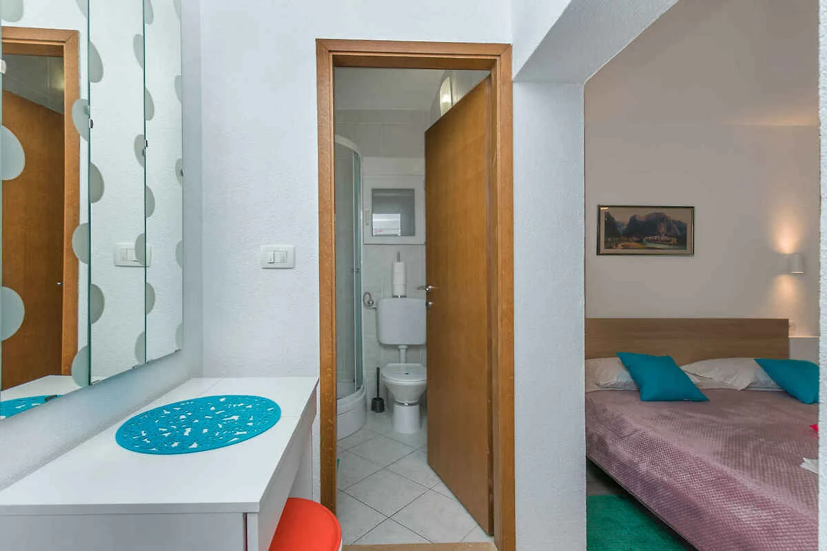 Localisation: Omis. L' appartement de vacances se trouve dans une maison d´appartements et a l´installation moderne. Le terrain se trouve à la périphérie. Aussi pour la vue sur le panorama et l' emplacement tranquille et ensoleillé est populaire la domicile. À la maison sont disponibles des places de stationnement dans un garage. À la distance de 250 m est la possibilité d'achats la plus proche, restaurant 400 m et centre-ville 600 m. aéroport à Diviser 45 km. Mamies: médecin 1300 m, banque 250 m et pharmacie 550 m.