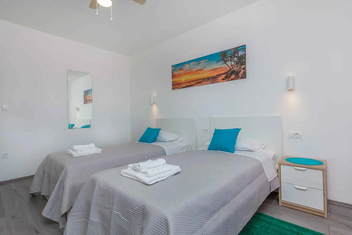 Votre appartement de vacances: Votre appartement de vacances a 1 étage, 3 chambres (dont 2 chambres à coucher), est de 82 m² et convenable pour un maximum de 5 personnes. Un air conditionné assure une température agréable pendant les journées chaudes. Pendant les journées plus froides, votre appartement de vacances peut être chauffé par un chauffage électrique. L'entrée est in der 1. Etage