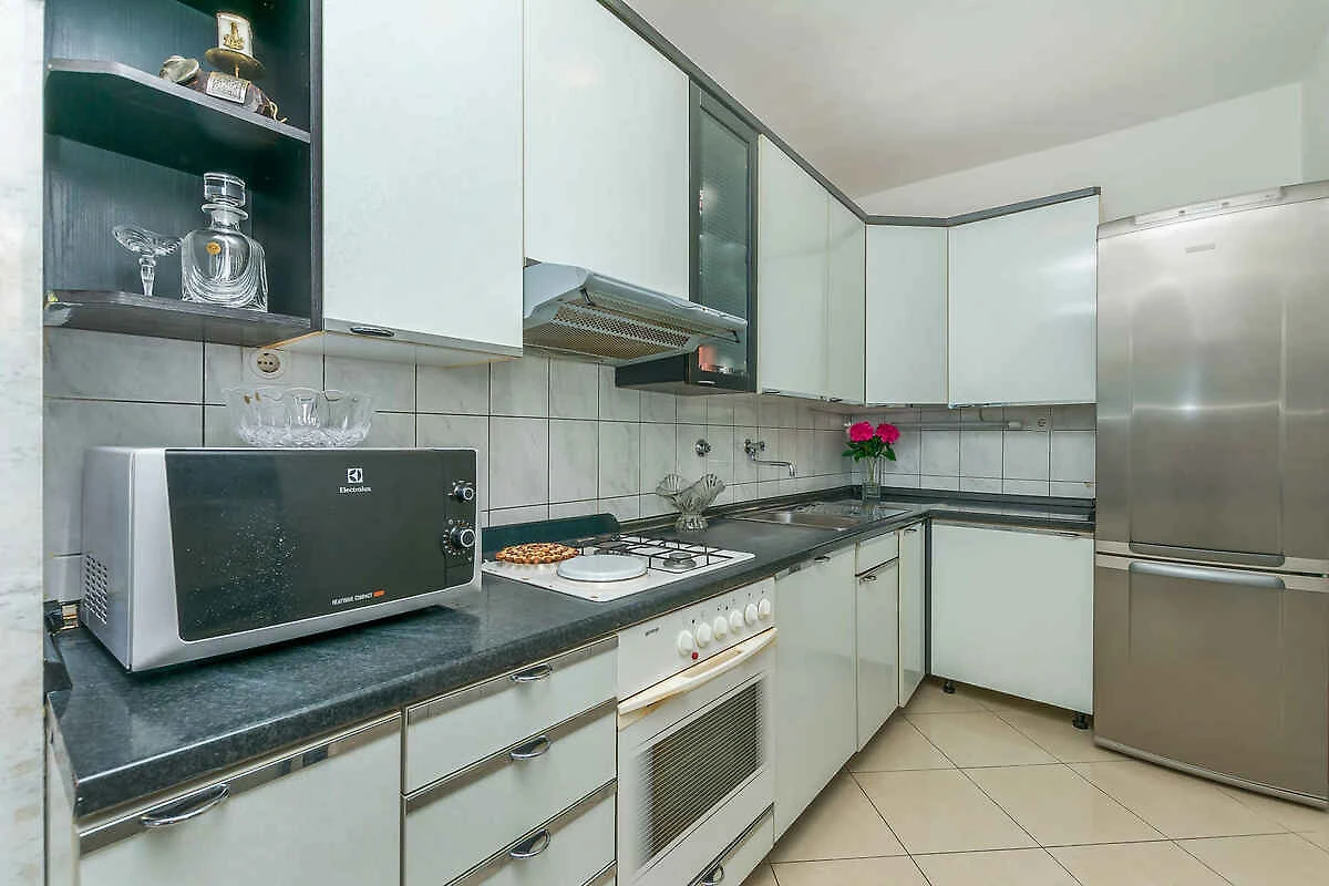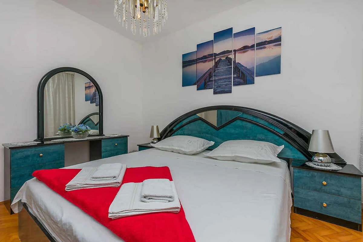 Localisation: Omis. L' appartement de vacances se trouve dans une maison jumel et a l´installation moderne. Le terrain se trouve dans un lotissement des maisons de vacances à la périphérie. Aussi pour la vue sur la mer et l' emplacement ensoleillé est populaire la domicile. L´accès à la propriété se fait par une route secondaire asphaltée. Un parking public est disponible sur la rue devant la maison. À la distance de 200 m est la possibilité d'achats la plus proche, restaurant 500 m et centre-ville 500 m. Diviser: discothèque 25 km et aéroport 45 km. Omis: médecin 400 m et pharmacie, banque respectivement 500 m. route principale 200 m.