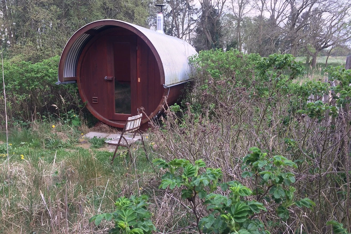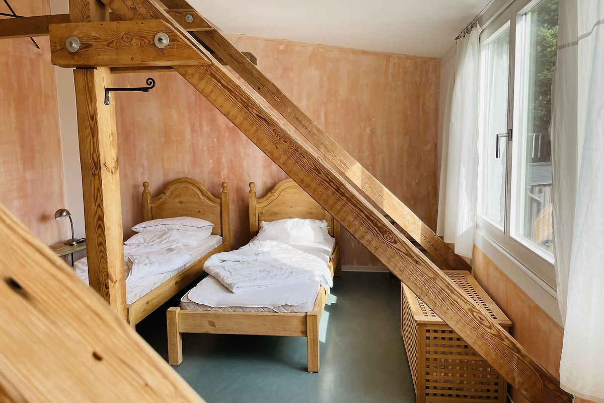 Un lieu sauvage situé dans le 'Parc naturel de l'île d'Usedom', loin de toute route et civilisation bruyante. L'appartement en duplex est construit de manière simple et biologique avec des murs en enduit d'argile, des sols en ardoise et parquet en chêne, luxueusement simples, dans une tendance de couleur 'Orange' tout à fait individuelle. Il comprend deux chambres à coucher dans la partie supérieure, ainsi qu'un grand salon avec cuisine ouverte, une grande salle de bain et un hall au rez-de-chaussée. Le jardin sauvage est orné d'un sauna en tonneau "Mademoiselle Hedwig". La maisonnette "Orange, Bleu, Jaune et Rouge Rouille" est située dans Das Pergo. Elle ouvre ses portes six semaines par an pour accueillir des visiteurs pendant l'été. La maison et le jardin conviennent aux enfants de 8 ans et plus.