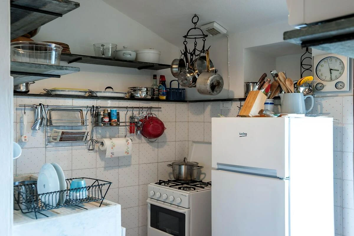 La maison, située au premier étage, comprend un salon chaleureux avec cheminée, télévision, lecteur DVD, chaîne hi-fi et canapé-lit simple. La grande cuisine est entièrement équipée avec des équipements modernes, notamment une bouilloire électrique, une cuisinière à gaz, un four, un micro-ondes, un lave-vaisselle et un réfrigérateur-congélateur. Deux chambres confortables, chacune avec accès à un balcon, sont à votre disposition : l'une avec un lit double et l'autre avec deux lits simples ou un lit double. La salle de bain comprend une douche, des toilettes, un lave-linge et un sèche-cheveux.