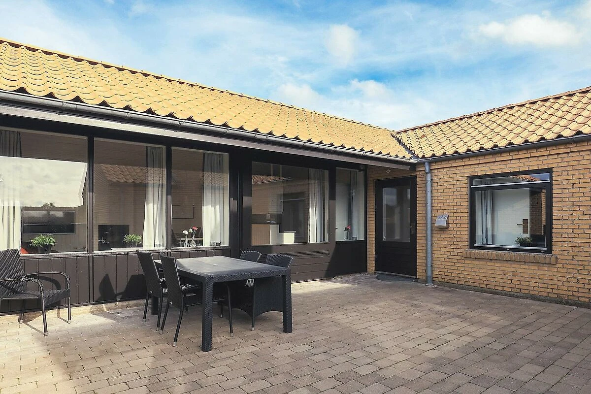 Cuisine(plaque de cuisson(électrique), cafetière/percolateur, lave-vaisselle , réfrigérateur(+ congélateur)), living/chambre à coucher(TV), chambre(2x lit simple), chambre(4x Lit superposé), salle de bains(lavabo, douche, WC), salle de bains(lavabo, douche, WC), lave-vaisselle , chauffage(central), terrasse, parking