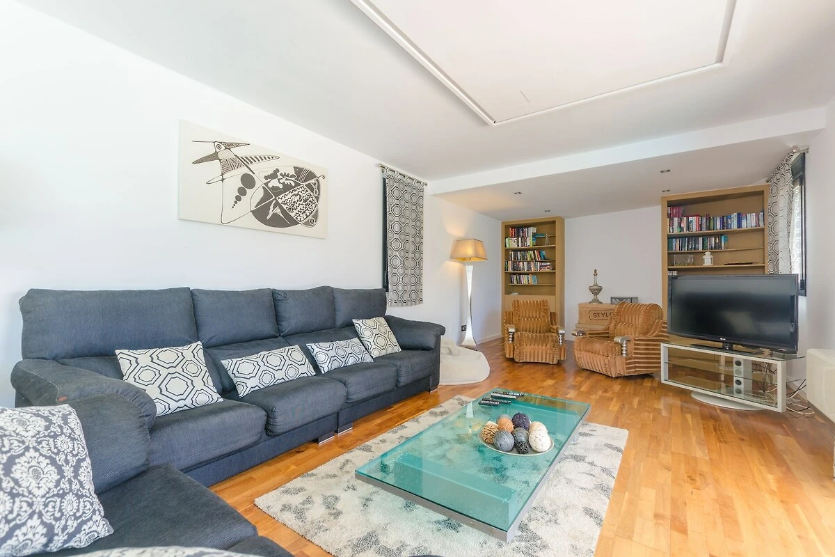 El salón-comedor es muy moderno, luminoso y acogedor, dispone de dos sofás, una mesita, TV-Sat, una mesa equipada con sillas, y aire acondicionado. La cocina, independiente y de gas, está totalmente equipada para poder cocinar sin ningún problema. Hay lavadora plancha y tabla de planchar.
