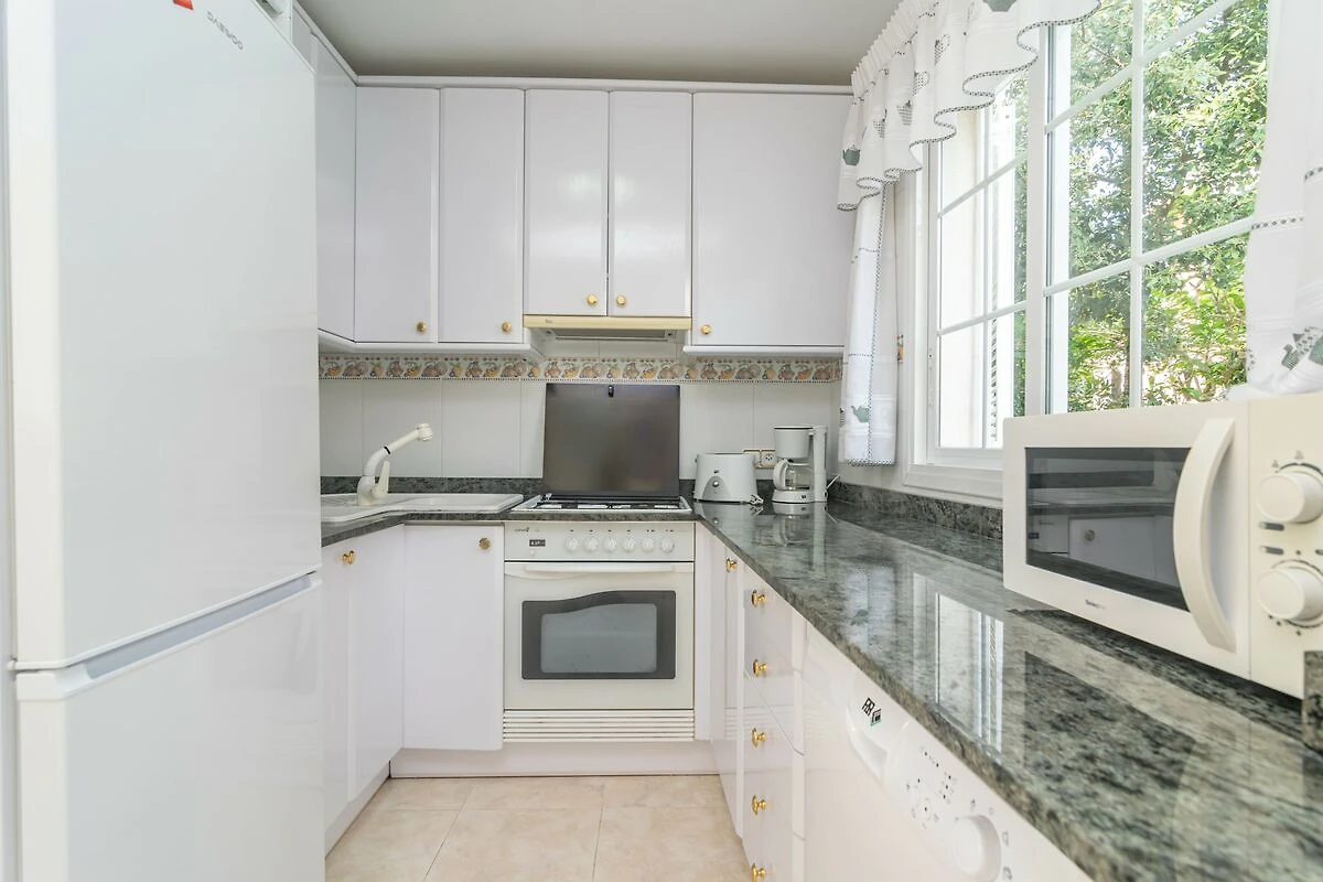 Salle de séjour, cuisine(plaque de cuisson, four), chambre(lit simple, climatisation), chambre(lit double, climatisation), chambre(lit simple, lit simple, climatisation), salle de bains, salle de bains, cafetière/percolateur, micro ondes, lave-vaisselle , combinaison réfrigérateur/congélateur, baignoire, baignoire, lavabo, lavabo, WC, WC, bidet, bidet, balcon ou terrasse, jardin, mobilier de jardin, lit d'enfant, chaise haute