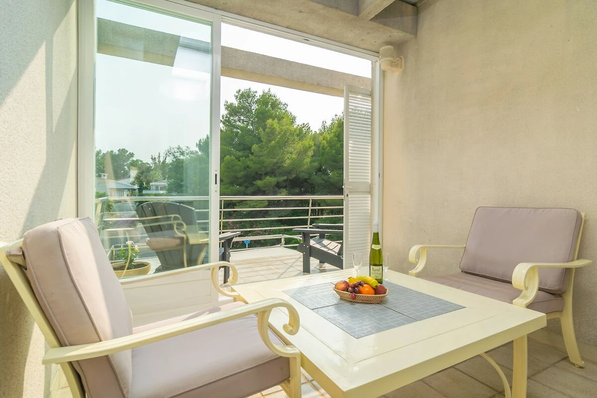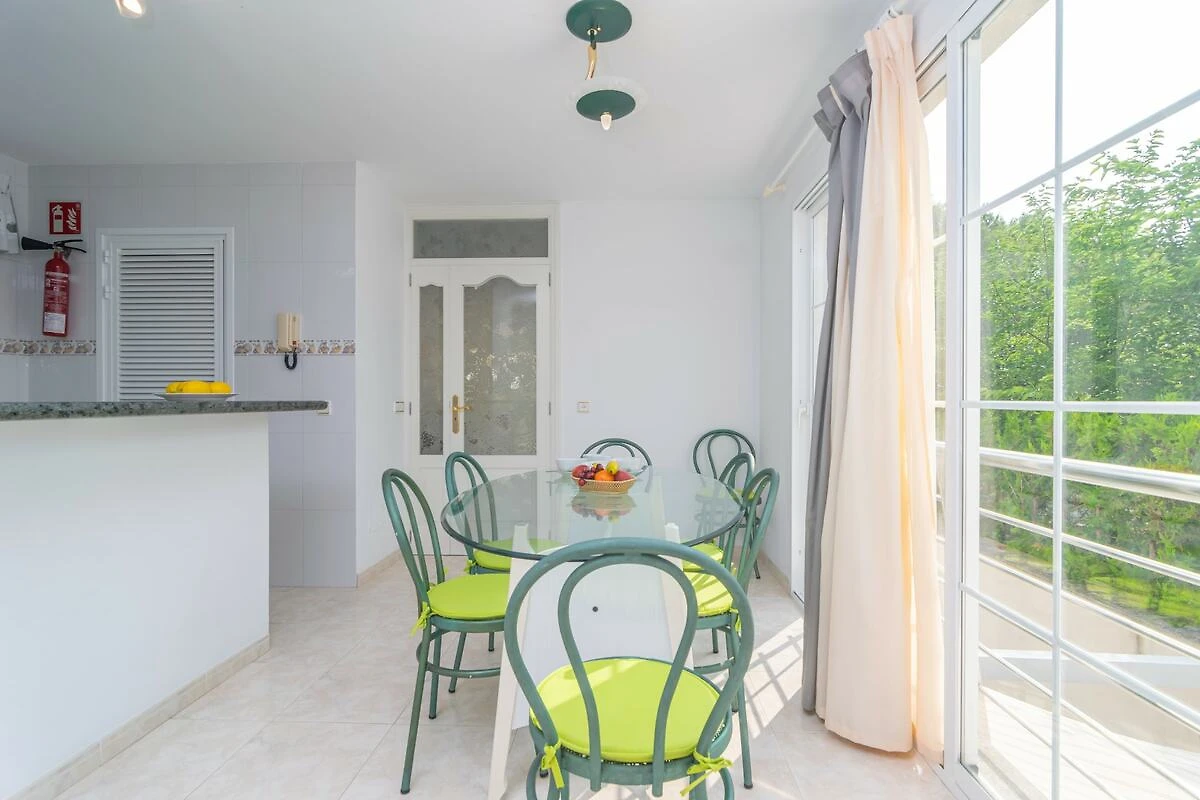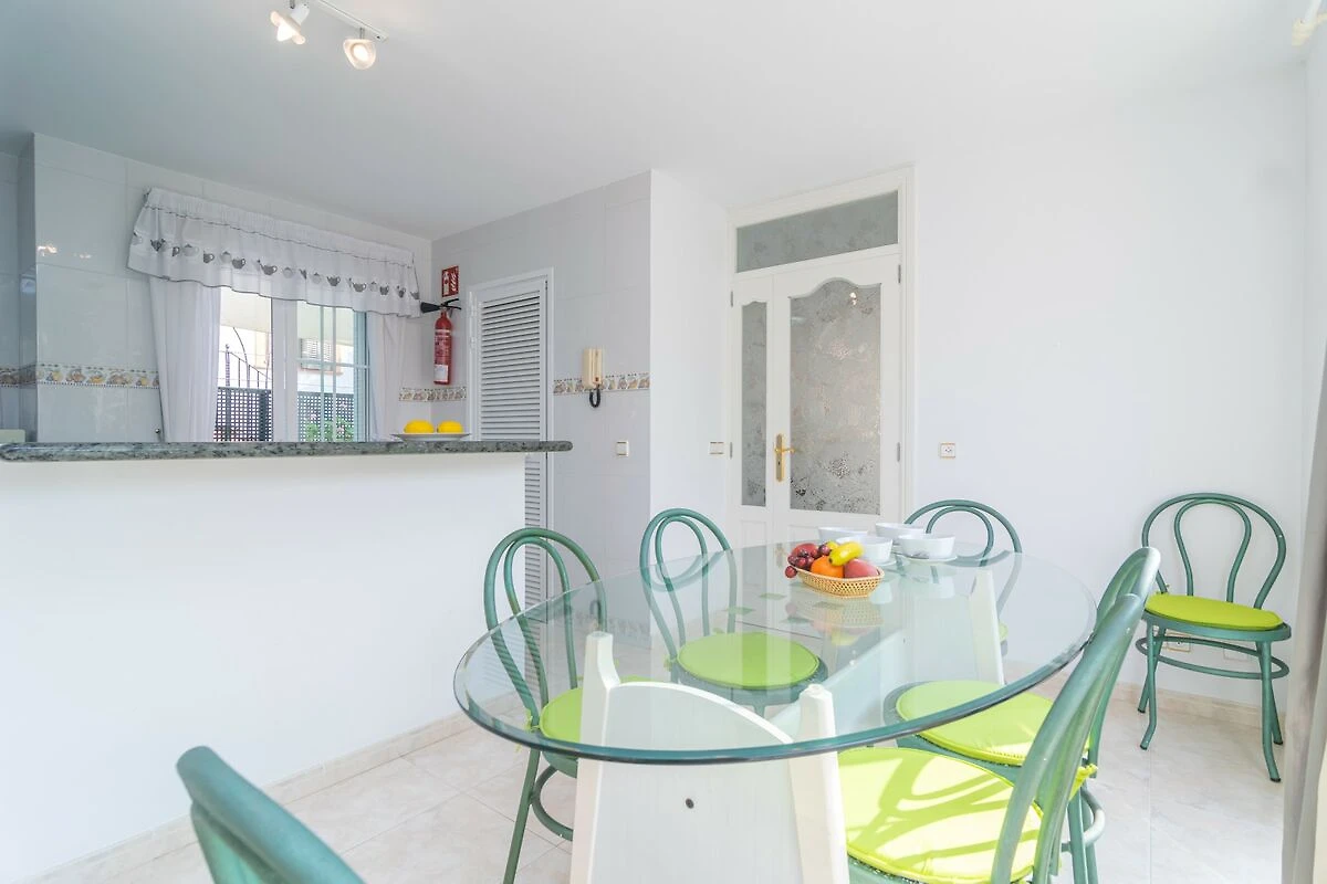 Cette villa confortable à Bonaire offre un havre de paix à seulement 700 m de la plage de Sant Pere. La terrasse extérieure, équipée de chaises longues et d'une atmosphère détendue, est idéale pour profiter d'un barbecue après une journée de visites. Bien que l'intimité soit limitée grâce à la proximité des voisins, le quartier reste calme et reposant.