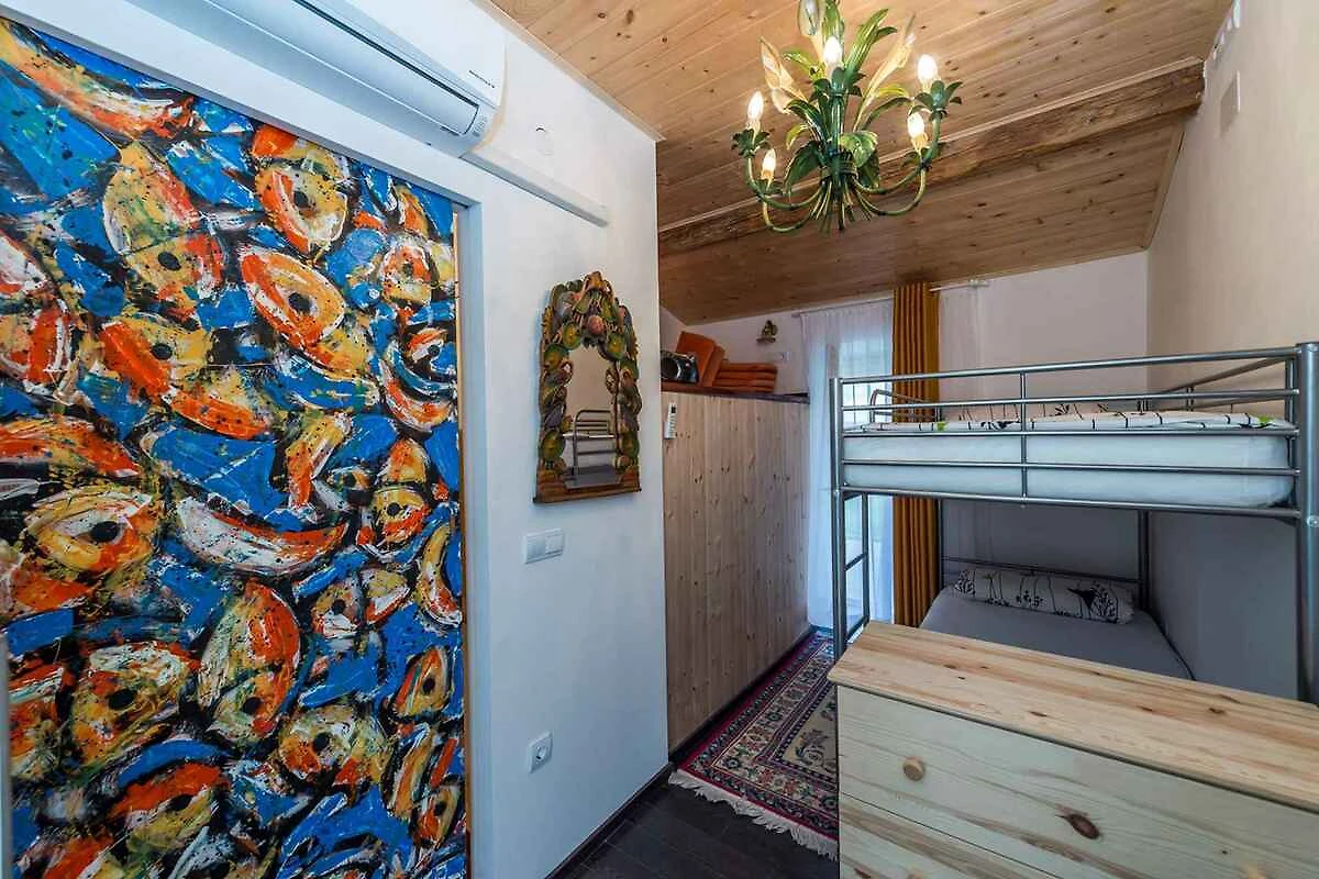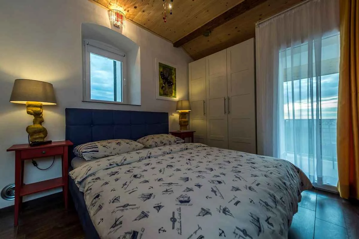 Votre maison de vacances: Votre villa a 2 étages, 3 chambres (dont 2 chambres à coucher), est de 80 m² et convenable pour un maximum de 4 personnes. Il est interdit de fumer à l'intérieur. Un air conditionné assure une température agréable pendant les journées chaudes. Pendant les journées plus froides, votre villa peut être chauffée par un chauffage central. Les chambres sont réparties comme suit: chambre à coucher avec 1 lit double. Vous avez accès au balcon. chambre à coucher avec 2 lits d'enfants et Lit enfant sous forme de lit superposé. salon avec coin salon, TV et un escalier en bois mène au premier étage avec deux chambres et une salle de bain avec douche. cuisine avec lave-vaisselle, cuisinière à gaz, four, frigo, machine à café et grille-pain. salle de bain avec douche. salle de bain avec douche, WC et sèche-cheveux.