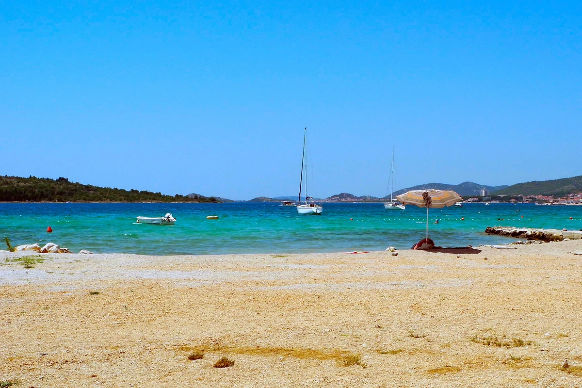 La plage où l'on peut se baigner est rocheuse et de galets, de plus grosses pierres avec des bains de soleil en béton (type de plage de baignade) ; 200 m Si vous prévoyez de passer toute la journée à la plage, nous vous recommandons d'apporter suffisamment de boissons, de crème solaire, des lunettes de soleil et un chapeau. À la distance de 200 m est la possibilité d'achats la plus proche, restaurant 200 m et centre-ville 750 m. aéroport à Diviser 45 km. Vodice: discothèque, médecin, pharmacie respectivement 1000 m. banque 800 m.