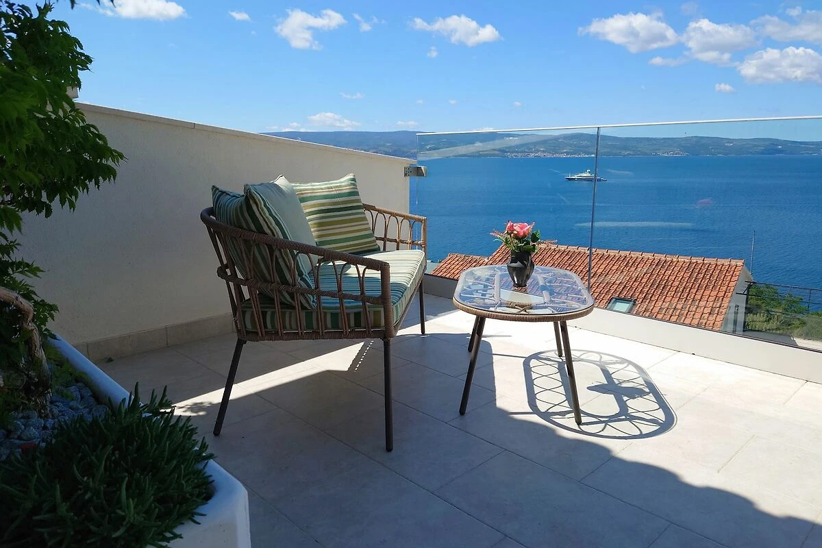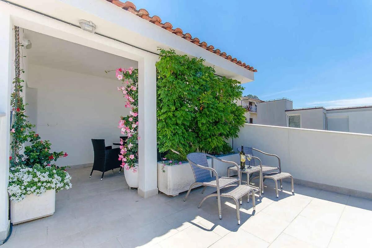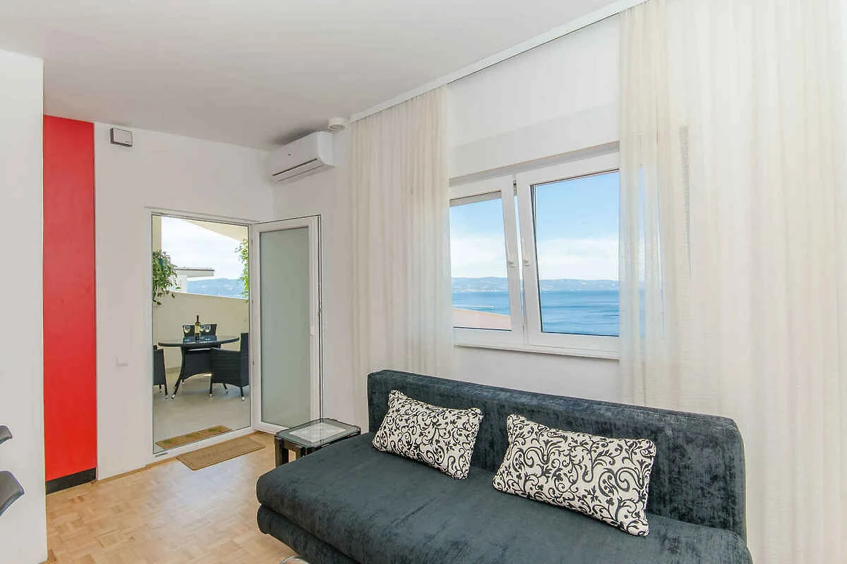 Localisation: Omis. L' appartement de vacances se trouve a l´installation moderne et fonctionnelle. Aussi pour la vue sur la mer est populaire la domicile. À la maison sont disponibles des places de stationnement dans un garage. Un parking public est disponible sur la rue devant la maison. À la distance de 100 m est la possibilité d'achats la plus proche, restaurant 400 m et centre-ville 600 m. aéroport à Diviser 30 km. Omis: médecin 100 m et pharmacie, banque respectivement 400 m.