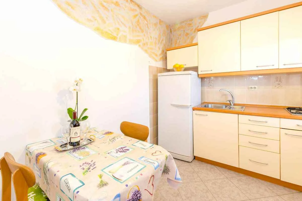 Localisation: Medulin. L' appartement de vacances se trouve dans une maison d´appartements et a l´installation fonctionnelle. Le terrain se trouve dans une zone résidentielle à la périphérie. Aussi pour la vue auf den Hof et l' emplacement ensoleillé est populaire la domicile. L´accès à la propriété se fait par une route principale asphaltée. À la maison est disponible pour vous 1 place de stationnement sur le terrain. À la distance de 450 m est la possibilité d'achats la plus proche, restaurant 450 m et centre-ville 450 m. Medulin: discothèque 1000 m et pharmacie 700 m. Pula: médecin 10 km, aéroport 12 km et gare 9 km.