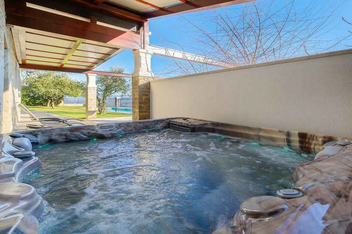 La villa se trouve sur un terrain de jardin, fermé, 500 m². Le terrain est entouré avec une clôture. Les installations sont disponibles pour l´utilisation exclusive. Détentez-vous en dehors sur la terrasse ou la pelouse avec parasol et transat. Pour le rafraîchiessement rapide, vous pouvez utiliser la douche de jardin. Bar à vin, cuisine extérieure, lit bébé La piscine pour utilisation privée dispose d´ une piscine extérieure. (24m2) L´offre de spa comprend un jacuzzi. Votre condition physique pouvez vous entretenir avec billard.