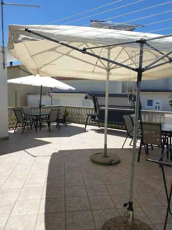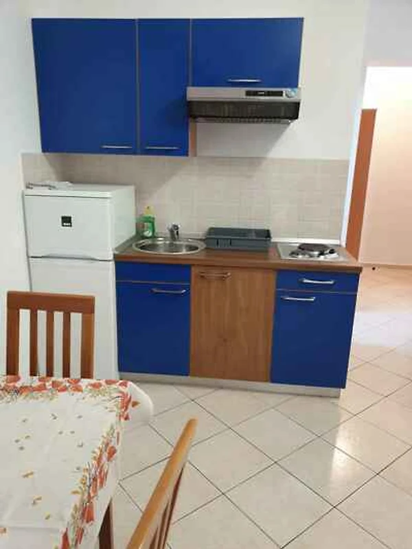 . Les chambres sont réparties comme suit: salon/chambre à coucher avec 2 lits simples, coin repas et TV. Vous avez accès à la terrasse de 80 m² avec des meubles de jardin et parasol. coin cuisine avec cuisinière électrique (2 plaques), hotte aspirante, frigo (congélateur) et machine à café. salle de bain avec douche, 1 lavabo 1 lavabos et WC.