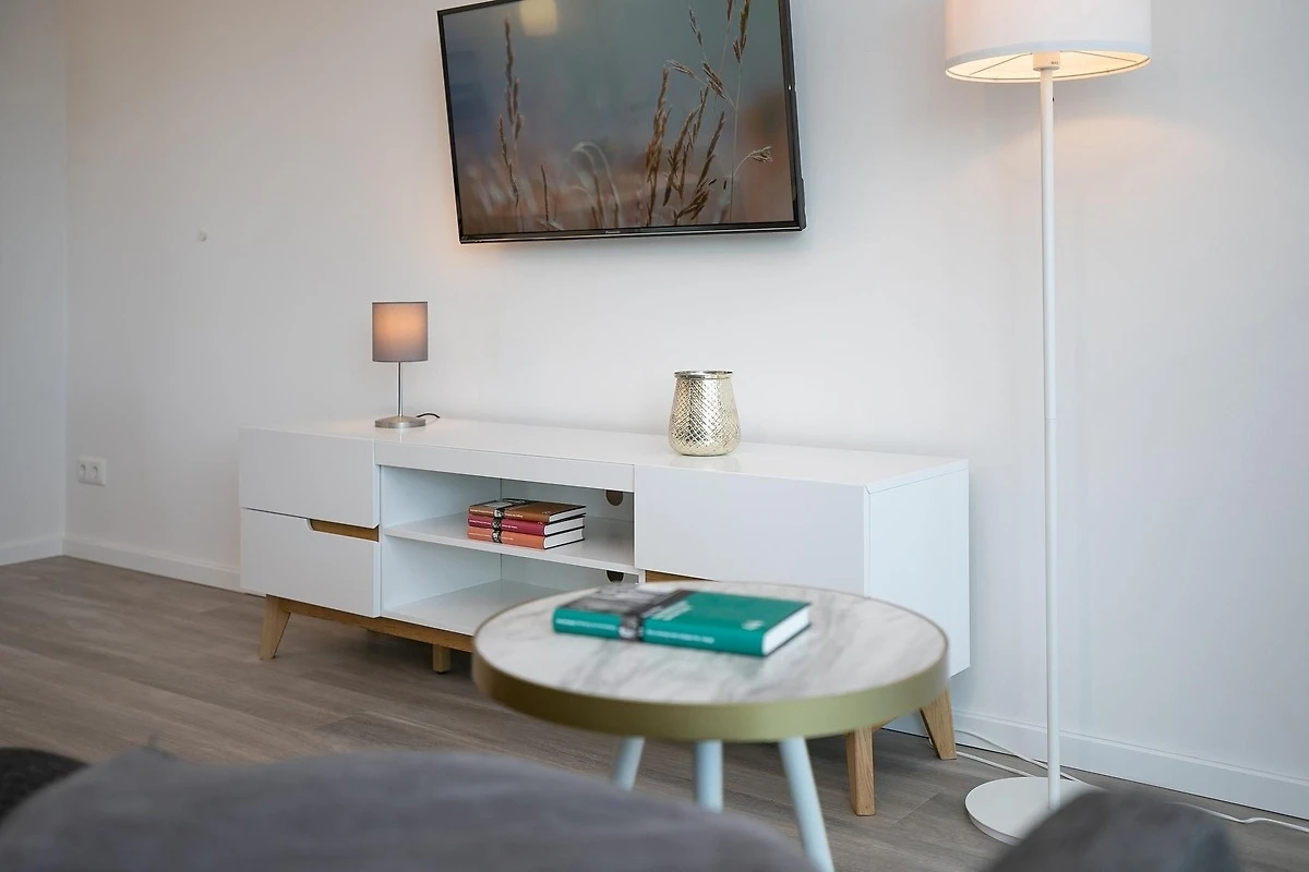 Klein aber fein! Im separaten Schlafzimmer ist ein riesengroßer Kleiderschrank vorhanden, die Betten waren für uns optimal. Badezimmer war auch einfach nur super. Die Küche war mit allem ausgestattet was man so brauchte, eine Dunstabzugshaube wäre vielleicht nicht verkehrt. Die Lage einfach super.