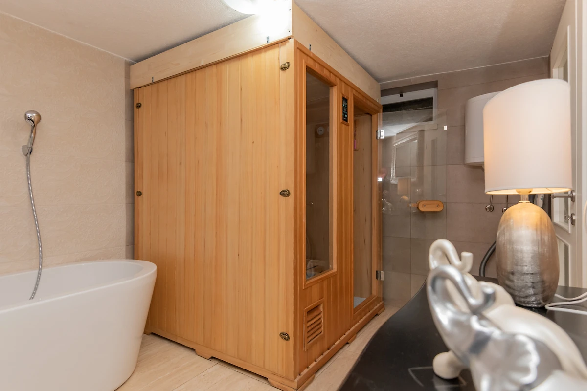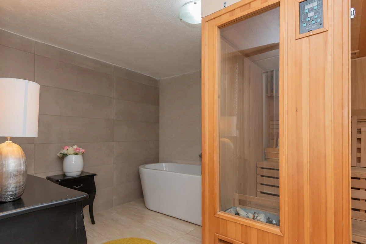 Elle dispose de jardin, mobilier de jardin, clôture, terrasse, lave-linge, barbecue, fer à repasser, accès internet (wifi), sèche-cheveux, sauna, spa, climatisation, piscine privée, parking extérieur même bâtiment, TV, tv satellite.