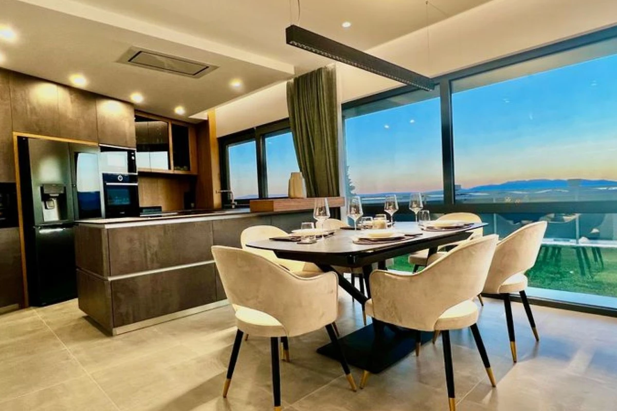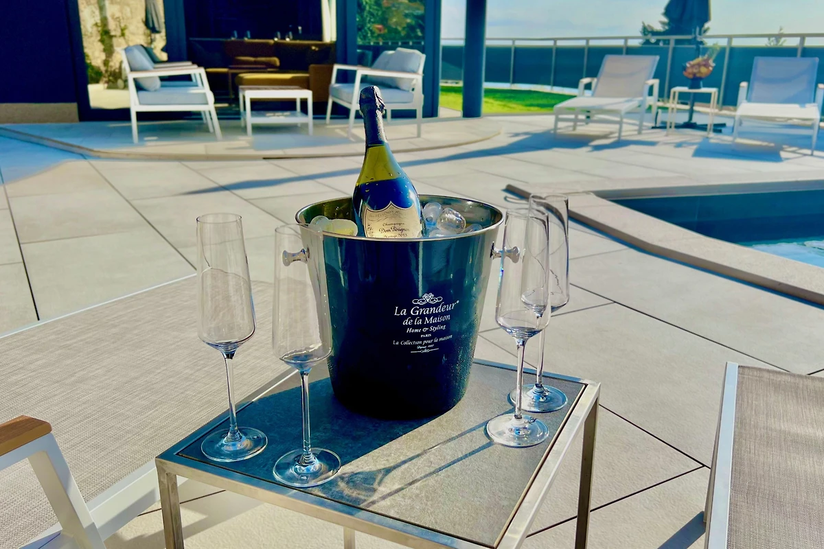 Logement de 180 m², avec vue sur la mer et le jardin.