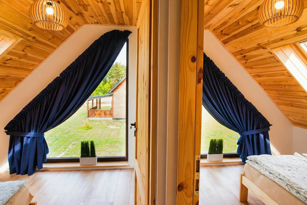 Les Rumiane Chatki sont deux maisons en bois confortables, utilisables toute l'année, situées au cœur de la Mazurie occidentale – dans le village de Rybno, à seulement quelques minutes à pied du beau lac Rumian. Entourés de forêt et d’espace, ils offrent intimité, calme et des conditions idéales pour se ressourcer en toute saison.
