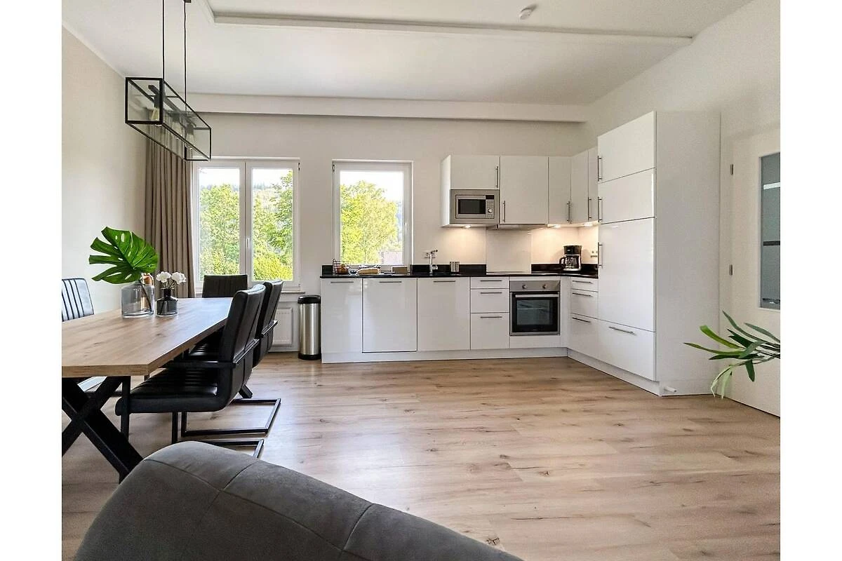 Profitez de vos vacances dans cet appartement moderne situé dans le village de montagne idyllique de Züschen, à seulement 5 km de la célèbre station de ski de Winterberg. Ce logement spacieux comprend deux chambres lumineuses avec de confortables lits à sommier tapissier, une salle de bains élégante et un chaleureux salon/salle à manger avec une télévision connectée et un accès à un balcon offrant une vue panoramique imprenable. La cuisine ouverte entièrement équipée, avec plaques vitrocéramiques, four, réfrigérateur avec compartiment congélateur, machine à café Nespresso et machine à café filtre, vous invite à passer des soirées conviviales.