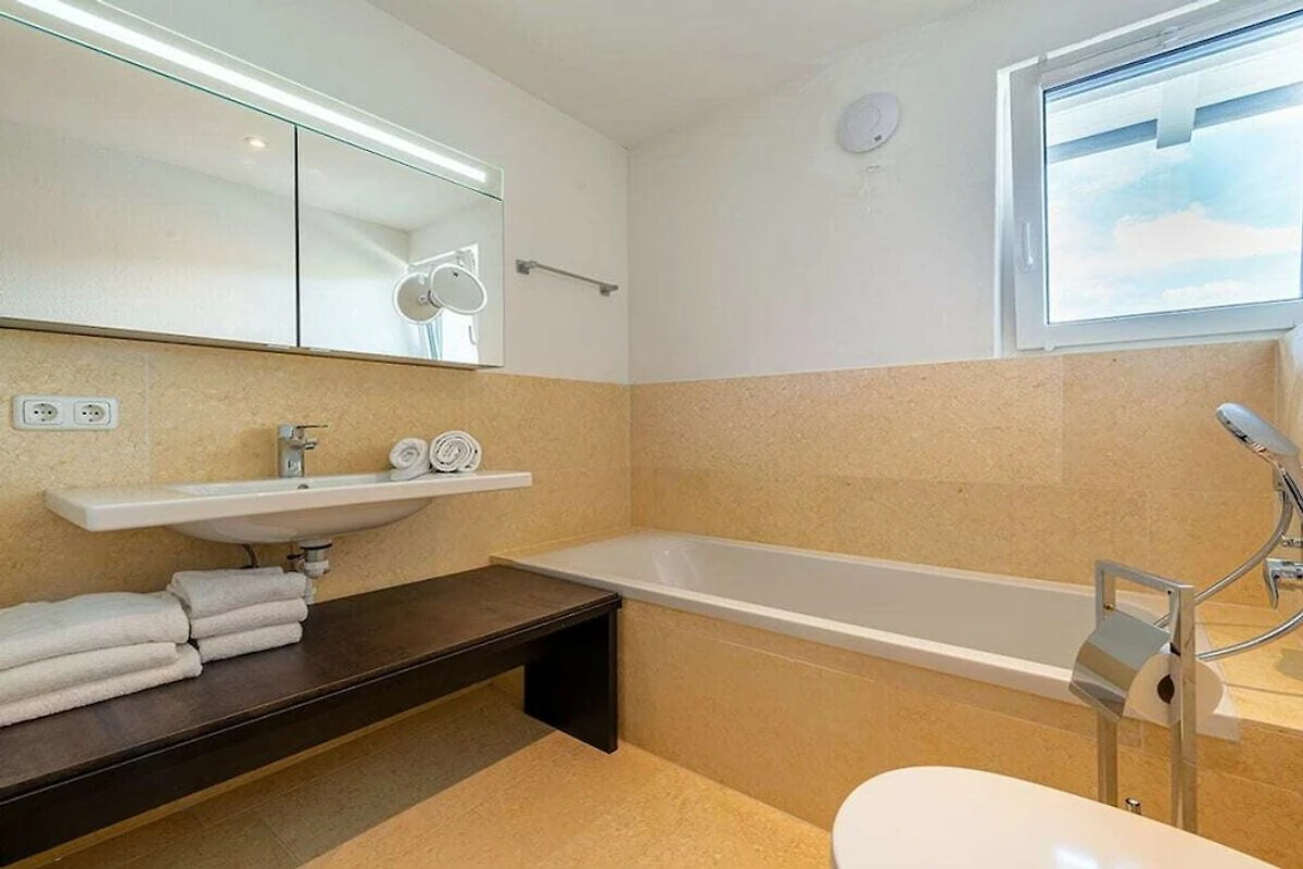 Cet appartement dispose d'une grande terrasse d'angle sur le toit (environ 21 m²) avec vue sur les montagnes et les collines.