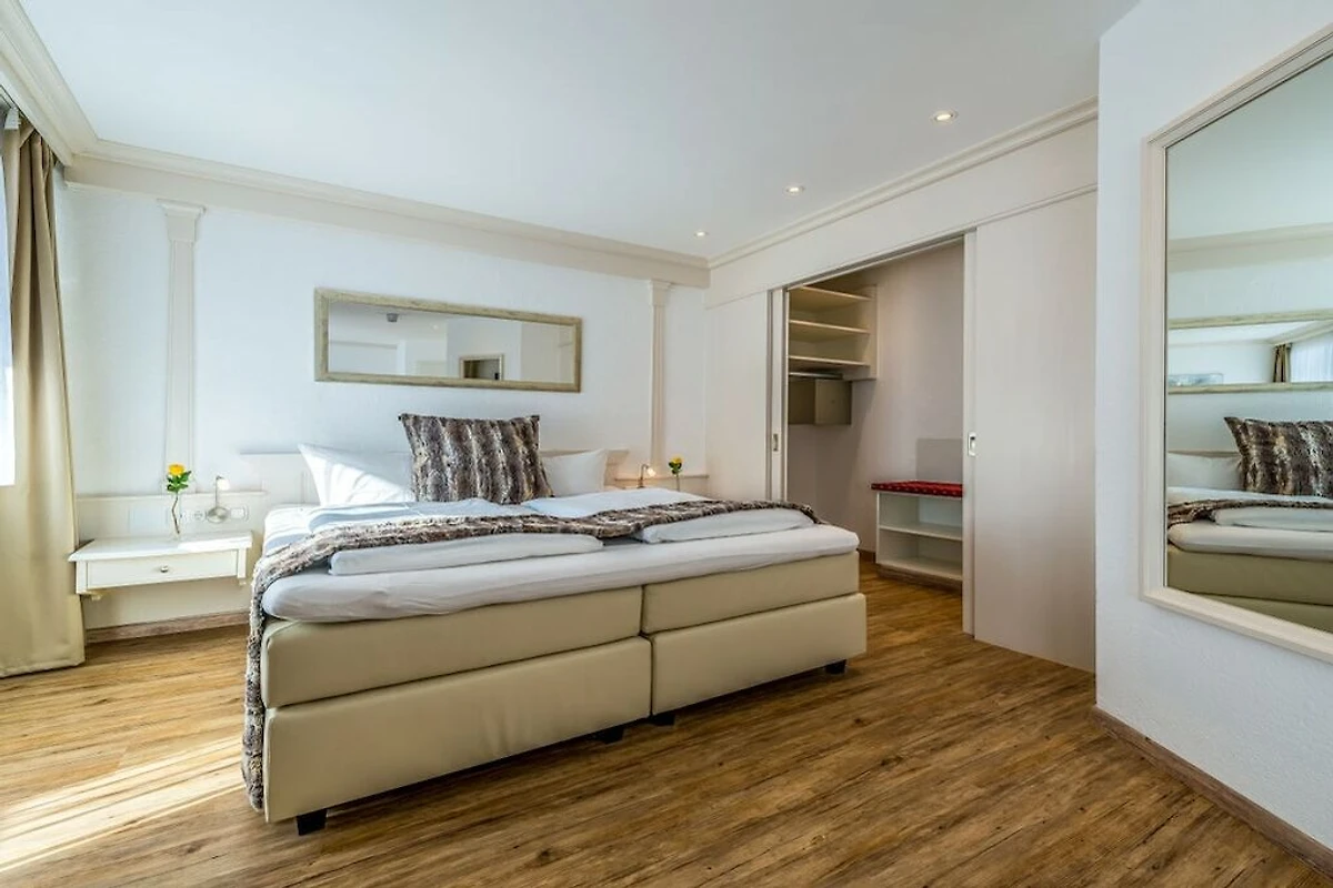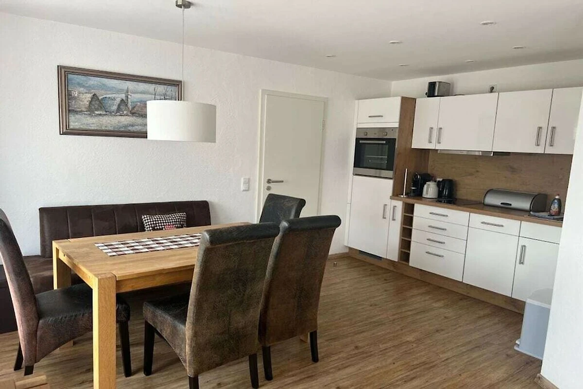 Parquet de haute qualité, tissus raffinés et matériaux nobles vous attendent dans notre appartement « Alpenblick ». Une cuisine bien équipée avec four, machine à café, bouilloire et grille-pain est à votre disposition. La salle de bain spacieuse est équipée d'une douche, d'un meuble vasque et de toilettes. Un grand balcon exposé sud avec un coin salon confortable vous attend. Pour un sommeil réparateur, vous trouverez des lits à sommier tapissier de haute qualité. Les serviettes, le linge de lit et la carte Oberstaufen Plus (avec forfait de ski en hiver) sont inclus dans le prix !