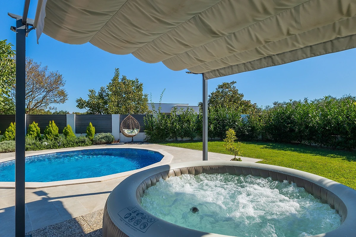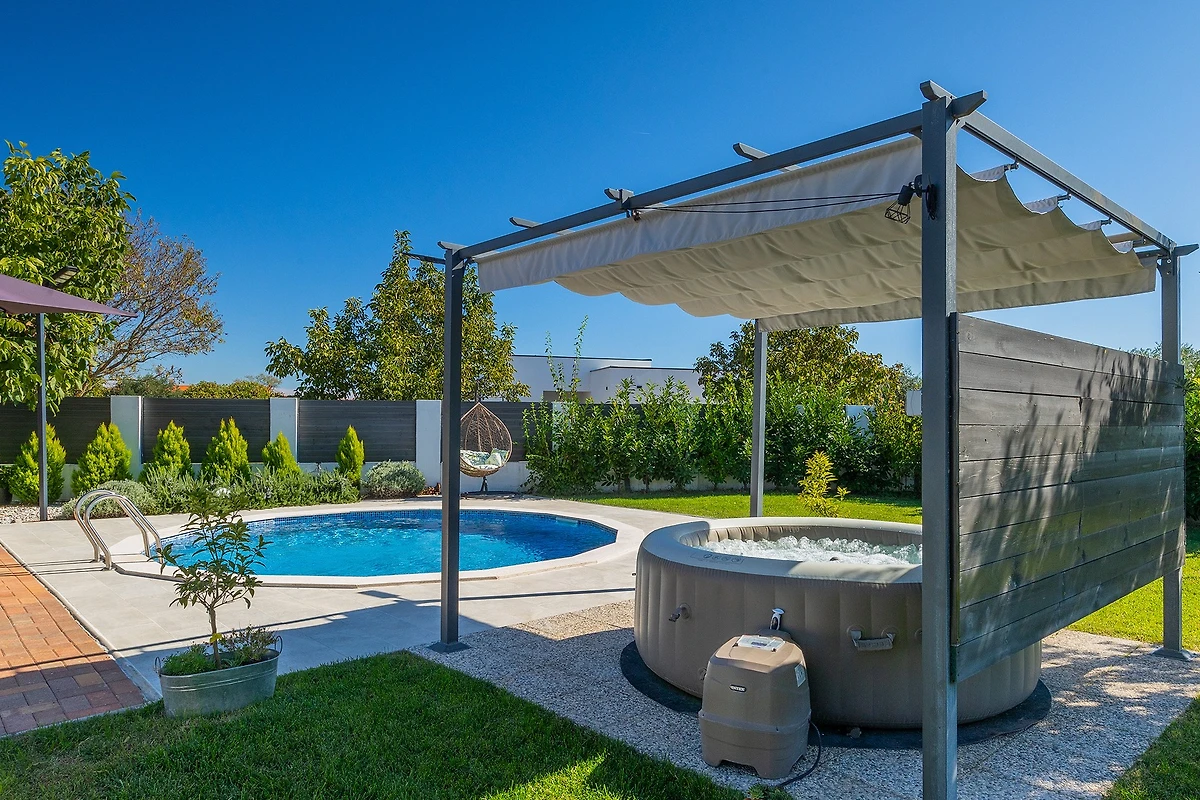 Elle dispose de jardin, mobilier de jardin, clôture, terrasse, lave-linge, barbecue, cheminée, fer à repasser, accès internet (wifi), sèche-cheveux, jacuzzi, spa, climatisation, piscine privée, parking extérieur même bâtiment, 1 Télévision.
