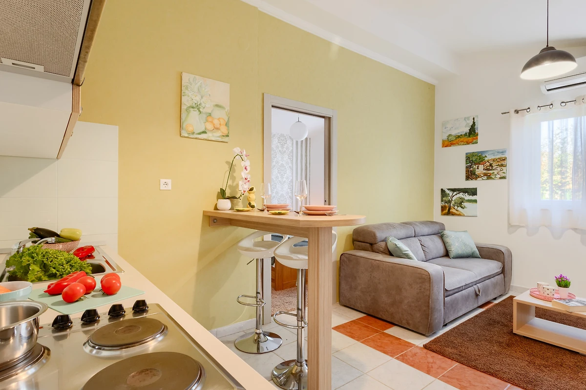 La location se trouve à 900 m de la plage de sable "Portin Biondi", 900 m de la ville "Rovinj - centar", 1 km du supermarché "Kaufland", 40 km de l'aéroport "Pula".