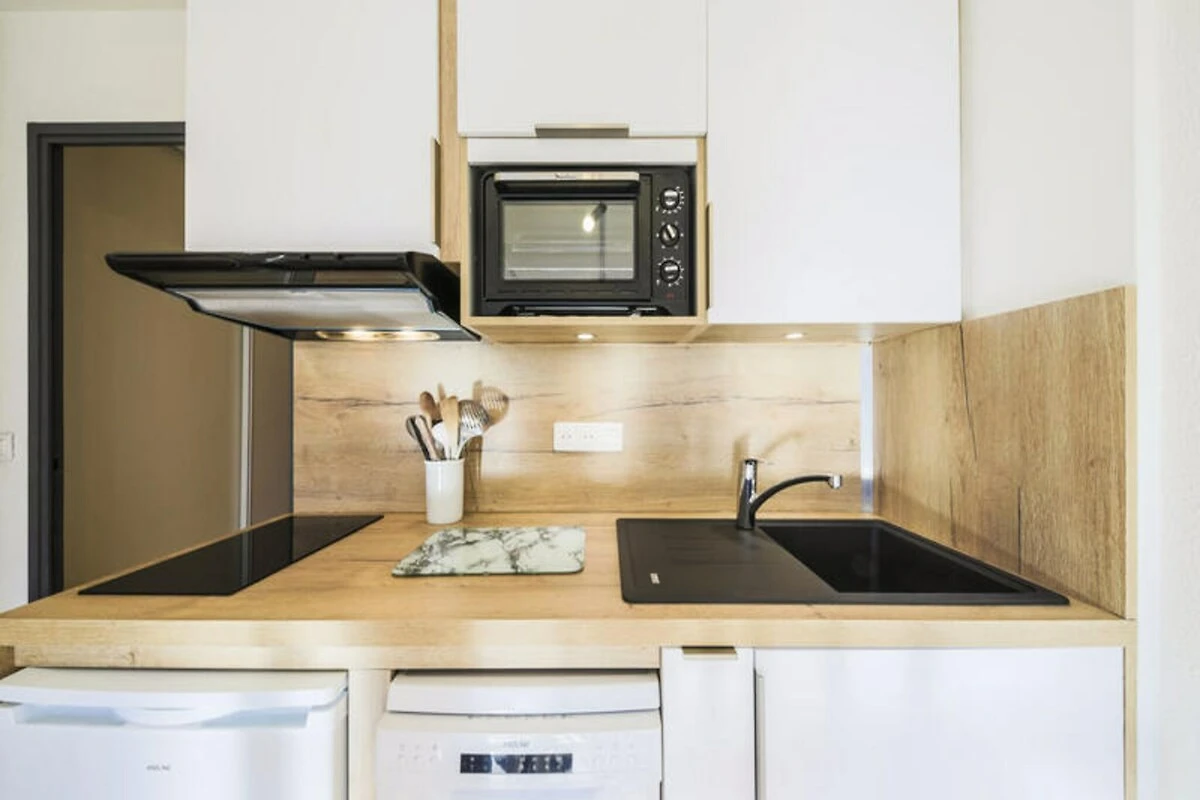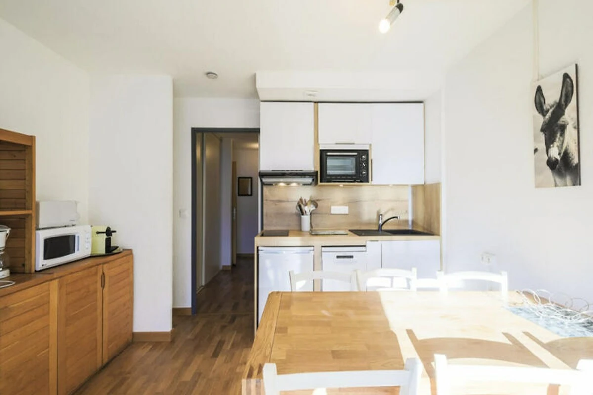 La résidence propose un agencement chaleureux et bien pensé, idéal pour les familles ou les petits groupes. Avec un salon comprenant un canapé-lit, un fauteuil confortable et un coin repas pour cinq personnes, vous vous sentirez comme chez vous. La cuisine ouverte est entièrement équipée pour préparer de délicieux repas, tandis que le balcon privé offre un espace paisible pour profiter de l'air pur de la montagne. La chambre, avec un lit double et des lits superposés, vous garantit des nuits reposantes après une journée d'aventure. Des équipements modernes tels que le Wi-Fi (en supplément) et la possibilité d'accueillir des animaux domestiques contribuent à votre confort. Située à seulement 300 mètres des pistes et des points de rendez-vous des écoles de ski, la résidence offre un accès facile au célèbre domaine skiable du Grand Massif. Une navette Skibus gratuite facilite vos déplacements dans la région, tandis que le centre commercial voisin, à seulement 140 mètres, répond à tous vos besoins quotidiens. Pour une ambiance après-ski animée, le quartier du Forum de Flaine, avec ses nombreux bars, restaurants et activités, est accessible en quelques minutes par ascenseur.