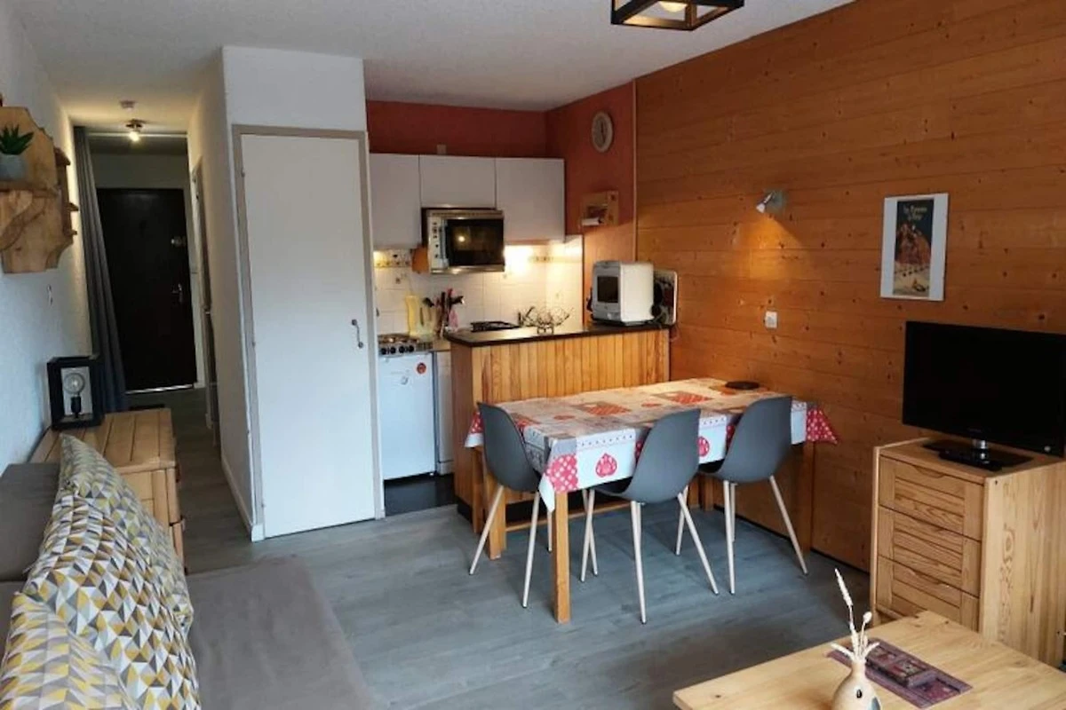 Ce chaleureux appartement de 40 m², situé au deuxième étage d'une résidence avec ascenseur, est idéal pour un séjour confortable pouvant accueillir jusqu'à quatre personnes. Il comprend une chambre avec un lit double (140x190) et un séjour avec un canapé lit (taille double : 140x190). L'appartement accepte les animaux domestiques, vous permettant ainsi d'emmener vos compagnons à quatre pattes. Elle est également équipée d'une télévision et d'un coin repas, ce qui en fait l'endroit idéal pour se détendre après une journée d'aventure.